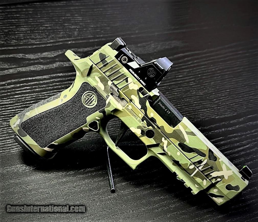 Description: Guns Listing ID: 1124250 This is a factory NEW, Never-Fired Gun. Our sister company, A Really Bad Design, is Certified by Cerakote(tm), they took the looks of this gun to another level. SIG SAUER P320 X-FIVE RXP 9MM, 2 Magazines of 17 Round, Romeo1 Pro - Custom Camo By A Really Bad Design SOLD Manufacturer: SIG SAUER Model: P320 X-Five RXP Caliber Info: 9MM LUGER (9X19 PARA) Condition: Used - Non-Certified Barrels: 4.7 BARREL Finish: CUSTOM |