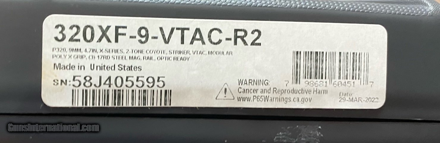 Description: Guns Listing ID: 563961 Up for sale is a Used - Excellent Condition Sig Sauer P320X VTAC Coyote Brown 9mm 4.7\" 17+1 w/Box. This pistol is in excess of 95% condition as pictured with little noted wear. Includes factory matching box and accessories as shown. SOLD Manufacturer: SIG SAUER Model: P320 X-VTAC Caliber Info: 9MM LUGER (9X19 PARA) Condition: Used - Non-Certified Barrels: 4.7" barrel Finish: BLACK/FLAT DARK EARTH |