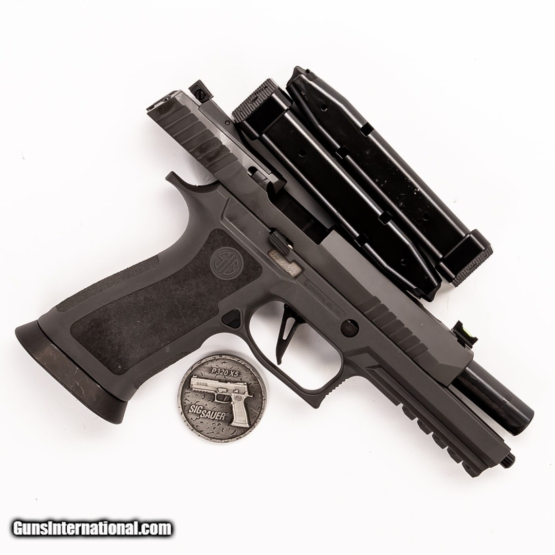 Description: Guns Listing ID: 346576 The Sig Sauer P320 X-Five is a high-end striker-fired competition pistol that is loaded with features such as a flared magwell, improved grip module that‚‚s weighted for less felt recoil, extended beavertail, lower bore axis, reshaped trigger, lightening slide cuts, along with numerous others. If you‚‚re in the market for a competition handgun that will give you the edge the P320 X-Five is a rock-solid option. 3-17 round magazines, the original case, manual, and a Legion coin are include SOLD Manufacturer: SIG SAUER Model: P320 XFIVE LEGION Caliber Info: 9MM LUGER Condition: Used - Certified Barrels: 5 BARREL Finish: LEGION GRAY |