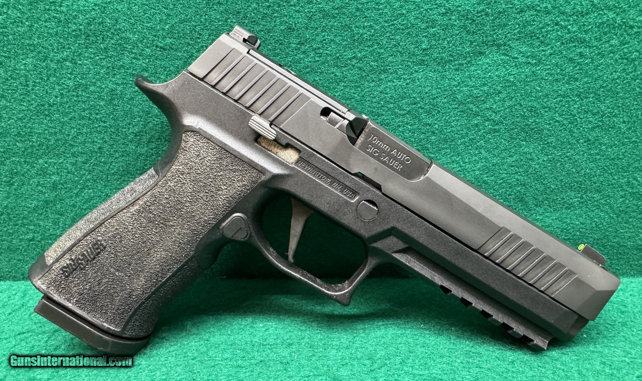 Description: Guns Listing ID: 550375 This listing is for a USED Sig Sauer P320 X-Ten 10mm Black Finish Optics Cut Night Sights 5\" BBL 15+1. This is a used gun, it has been fired and will have residue present. This Sig Sauer P320 X-Ten is chambered in 10mm, and it will hold 15 rounds in the standard magazine. This pistol comes with a 5 inch barrel. It comes equipped with fixed X-Ray3 Night sights. There are light scratches present around the slide, and there is dirt present around the grip. The action appears to be in good condition, the finish appears to be in good condition, and the bore appears to be in good condition. This pistol comes with five 15 round magazines and the hard case. This would be a great duty or plinking pistol. ** DISCLAIMER** THIS FIREARM HAS NOT BEEN TEST FIRED*** SOLD Manufacturer: SIG SAUER Model: P320-XTEN Caliber Info: 10MM Condition: Used - Non-Certified Barrels: 5 BARREL Action: STRIKER FIRED Finish: BLACK Weight: 2.06 LBS. |