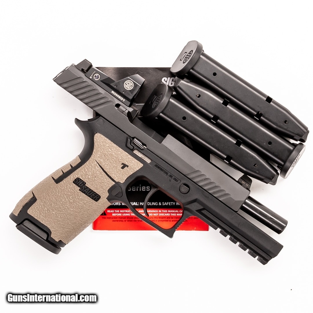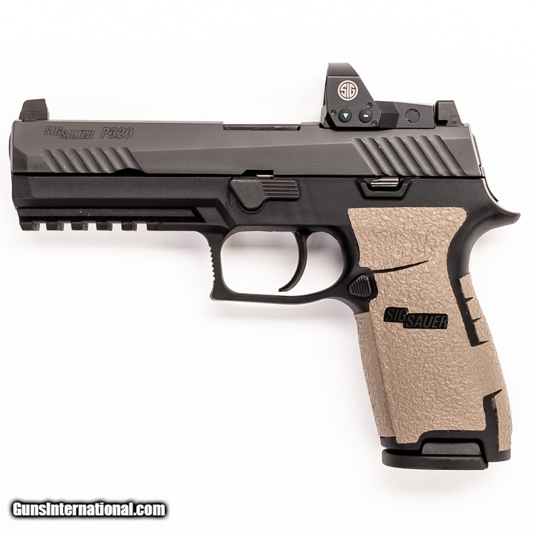 Description: Guns Listing ID: 358220 Chambered in 9mm, this Sig Sauer P320 is lightweight, durable, and well-suited for target shooting and home defense. The modular design of the P320 allows the user to change the pistol grip size and caliber using separately sold parts. This P320 is in excellent condition! It sports a rubberized FDE grip and a Sig Romeo optic. Purchase includes a Sig case and paperwork, four 17-round magazines, and a holster. SOLD Manufacturer: SIG SAUER Model: P320 Caliber Info: 9MM LUGER Condition: Used - Certified Barrels: 4.7 BARREL Finish: BLACK |