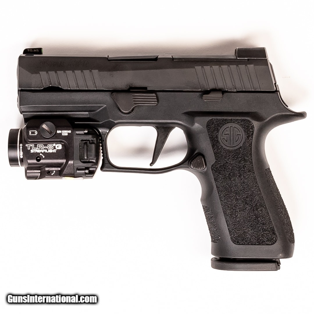 Description: Guns Listing ID: 445513 The Sig Sauer P320 is lightweight, durable, and well-suited for target shooting and home defense. The modular design of the P320 allows the user to change the pistol grip size and caliber using separately sold parts. This optic-ready P320 is equipped with Hi-Viz night sights and a TLR-8G 500 lumen light and green laser. Purchase includes the original case, manual, and two 15-round magazines. SOLD Manufacturer: SIG SAUER Model: P320 Caliber Info: 9MM LUGER Condition: Used - Certified Barrels: 3.6 BARREL Finish: BLACK |