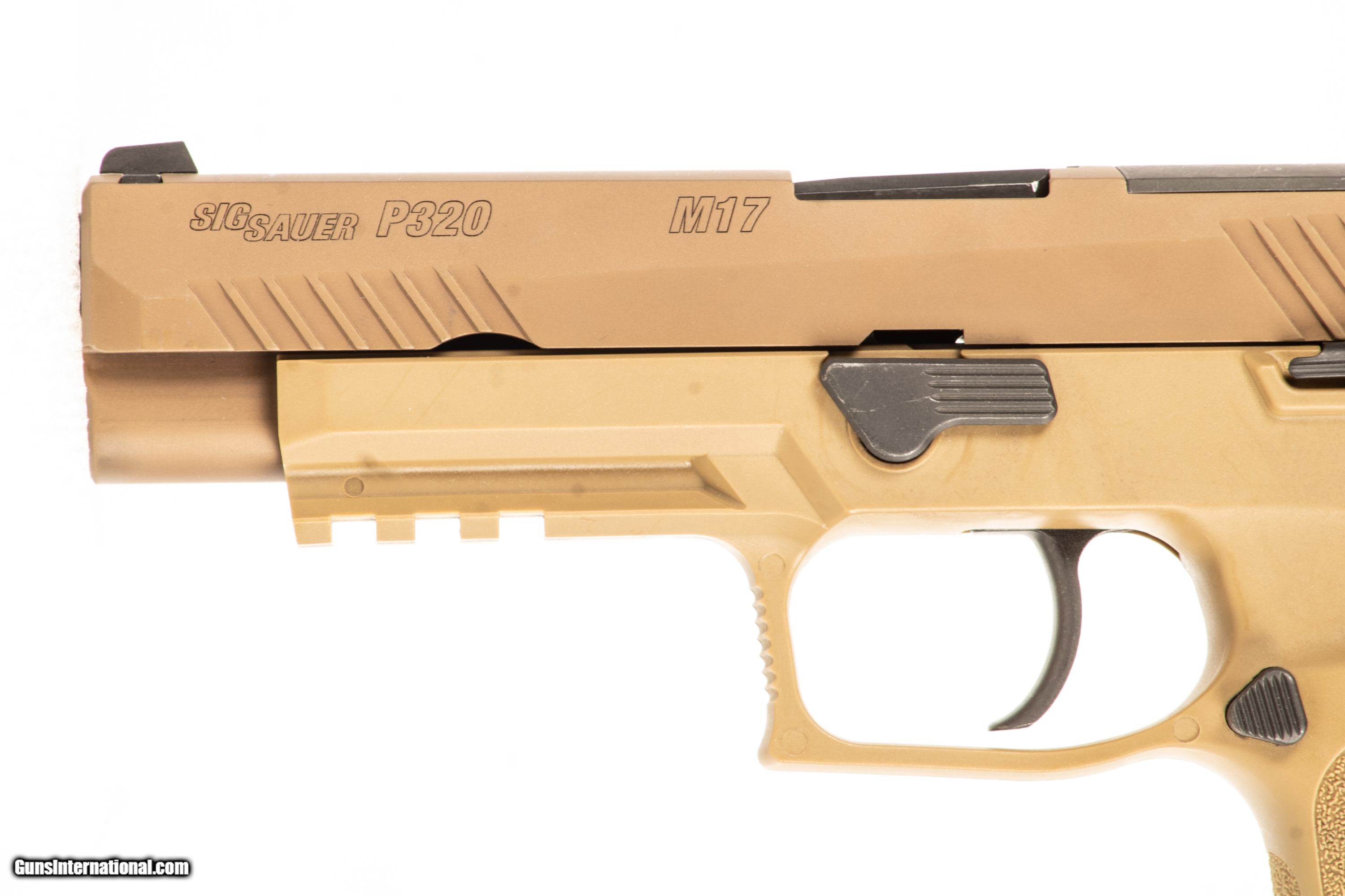 Description: Sig Sauer P320 M17 chambered in 9mm with a 5 inch barrel bright & shiny bore case and two extra 21-round magazines. This is a used firearm that is in excellent condition and is covered by Dury's Lifetime Warranty.