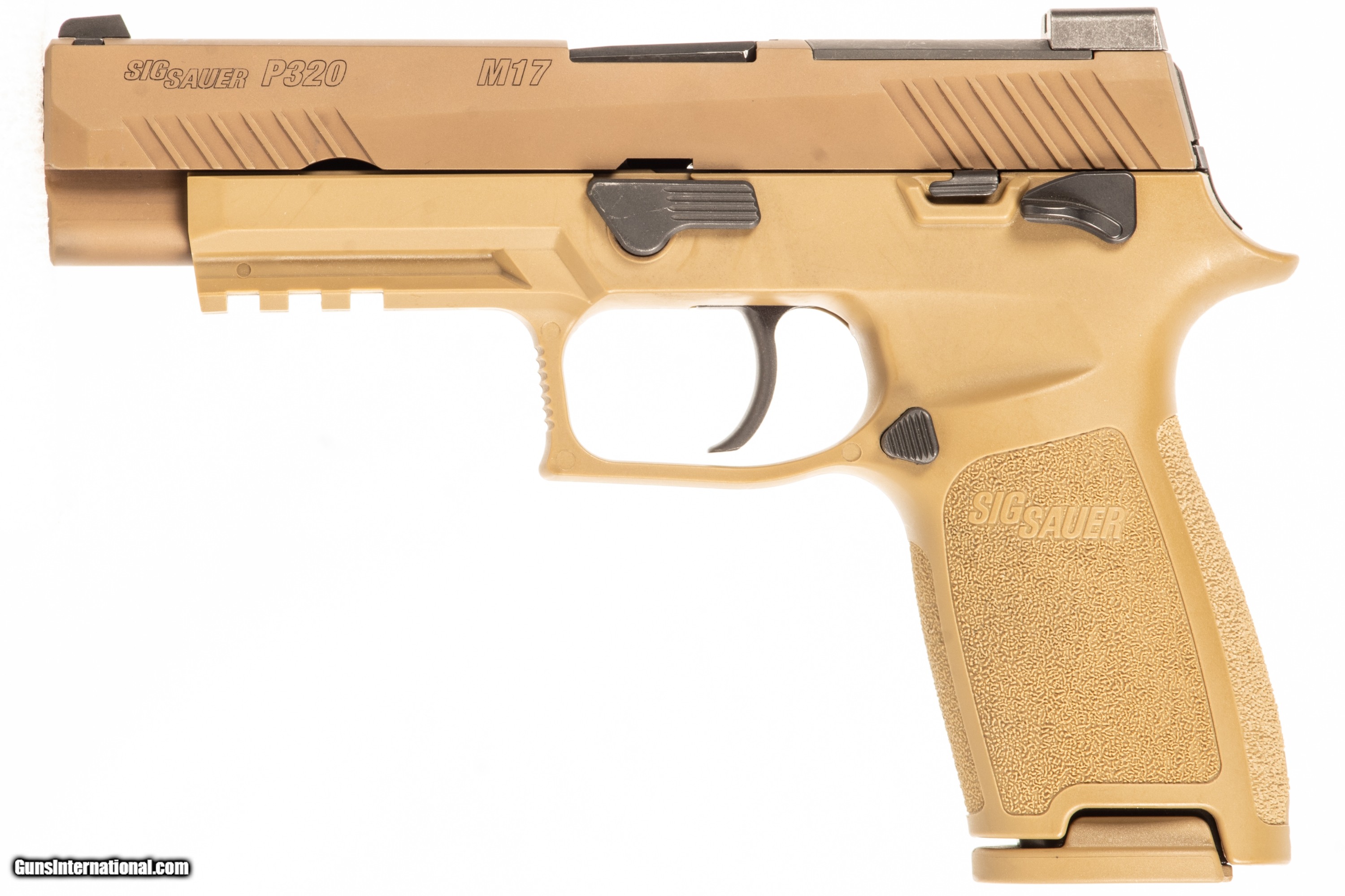 Sig Sauer P320 M17 chambered in 9mm with a 5 inch barrel bright & shiny bore case and two extra 21-round magazines. This is a used firearm that is in excellent condition and is covered by Dury's Lifetime Warranty.