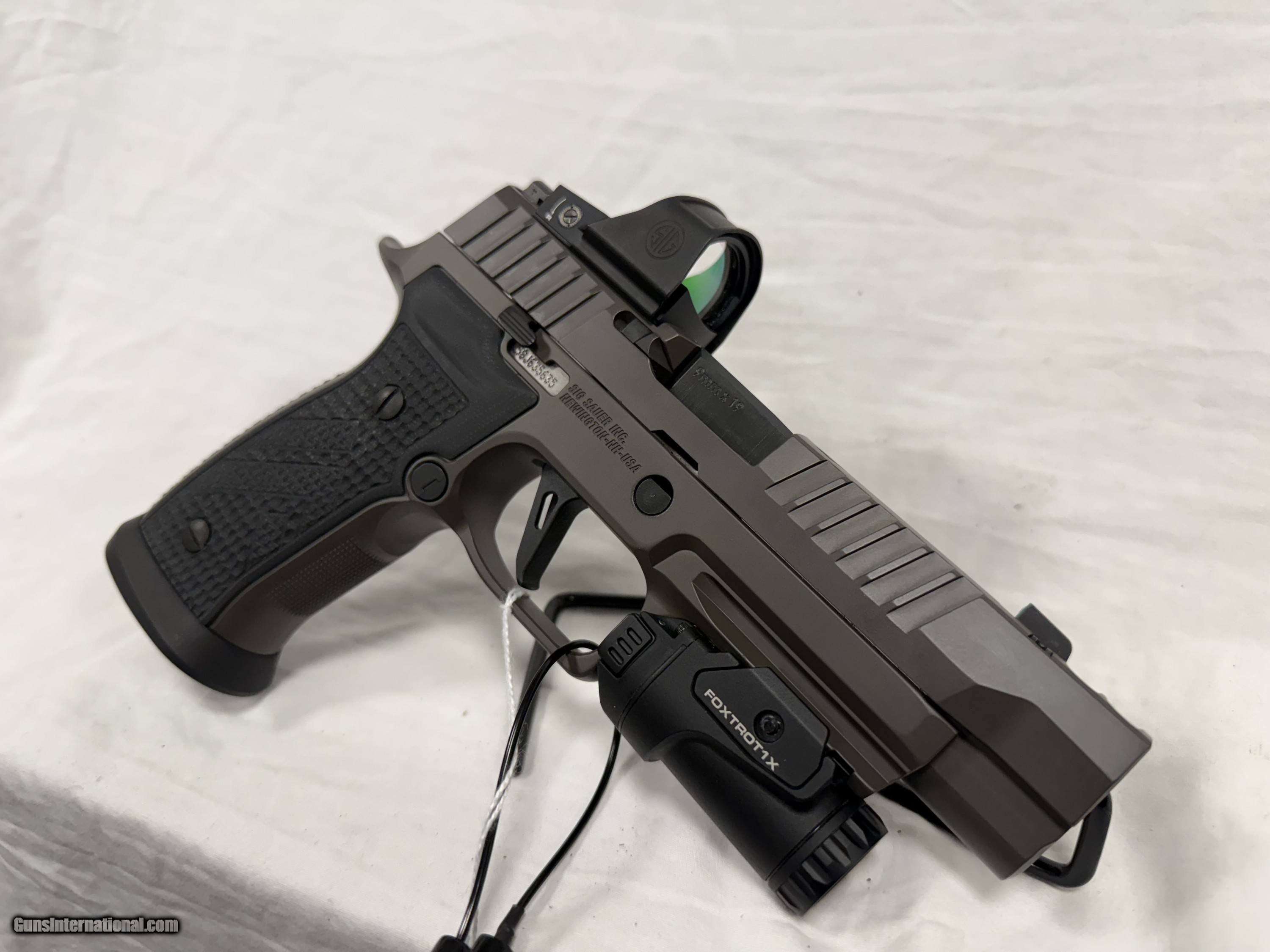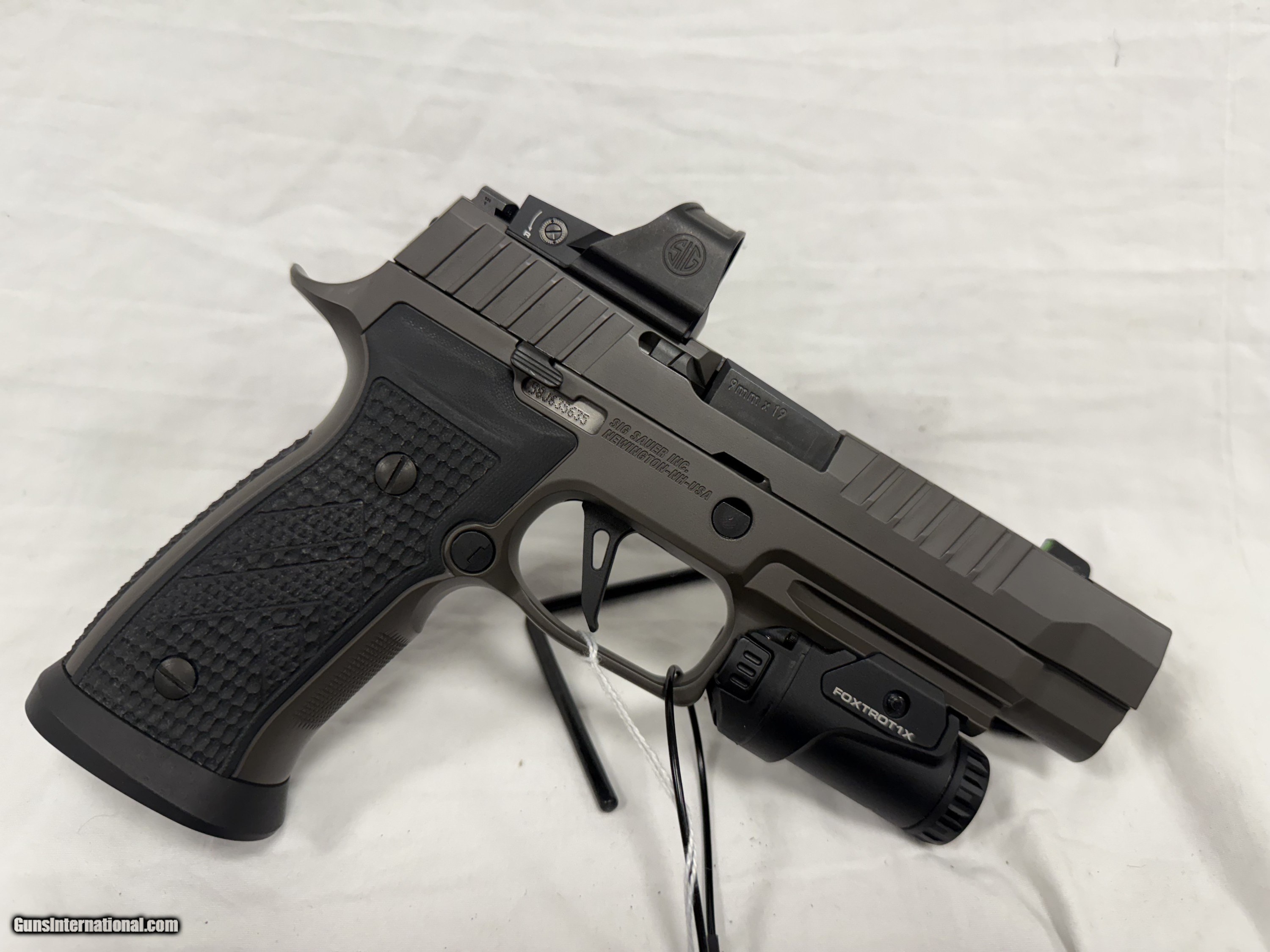 Description: This is a used item. While we do not test fire our used firearms, we perform an inspection and function check to determine the firearm is fully functional to the best of our ability. Please call with any questions. If you are interested in purchasing this item, please give us a call. Please have the "Seller #" and/or "Guns International #" ready along with the contact information for the FFL you'd like the item shipped to. For Sale from First State Firearms of Delaware AKA "The Gun Shop" in New Castle, DE. Shipping is $25.00. Includes $100.00 in shipping insurance. Additional insurance available at buyer's expense and request. SOLD Handgun Caliber: 9x19mm Parabellum (9mm Luger, 9x19mm NATO) Manufacturer: Sig Sauer Model: P320 AXG Legion Condition: Used Barrel Type: Carbon Steel Action: Semi-Automatic Triggers: Skeletonized Flat Trigger Sights: XRAY3 Day/Night Sights, Sig Romero Red dot Extras: Sig FOXTROT1X flashlight, 2- 10rd Extra Magazines Case: Sig Sauer Case |
