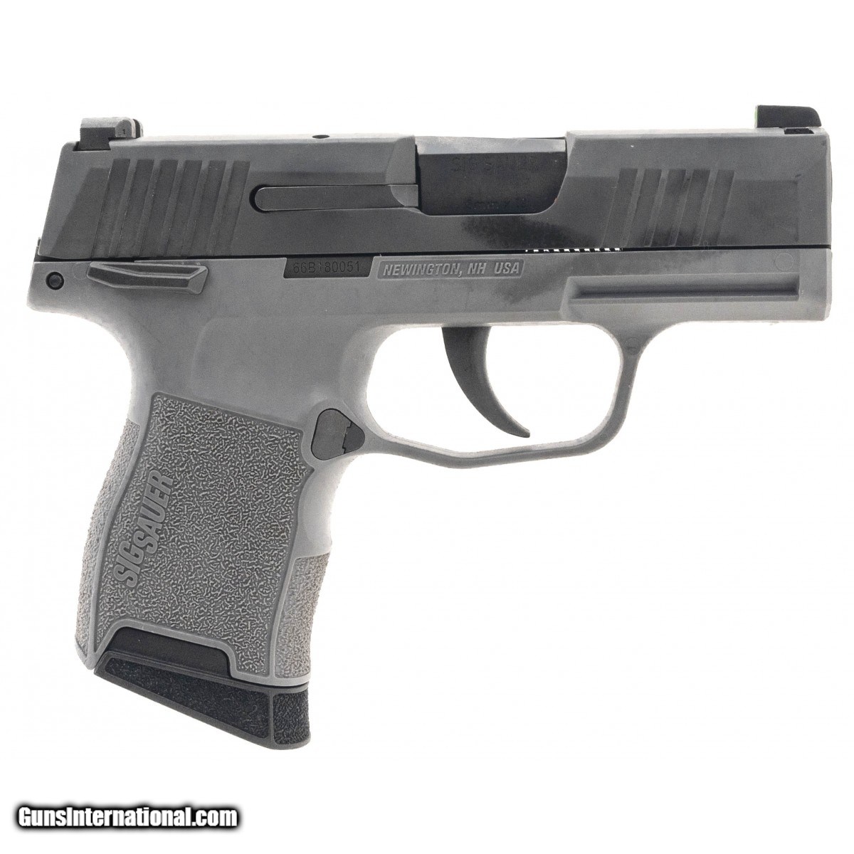 Description: " SN: 66B180051. Micro-compact pocket pistol with 3.1"", night sights, gray frame, and thumb safety. Overall very good condition. Comes with box and two extra magazines. SOLD |