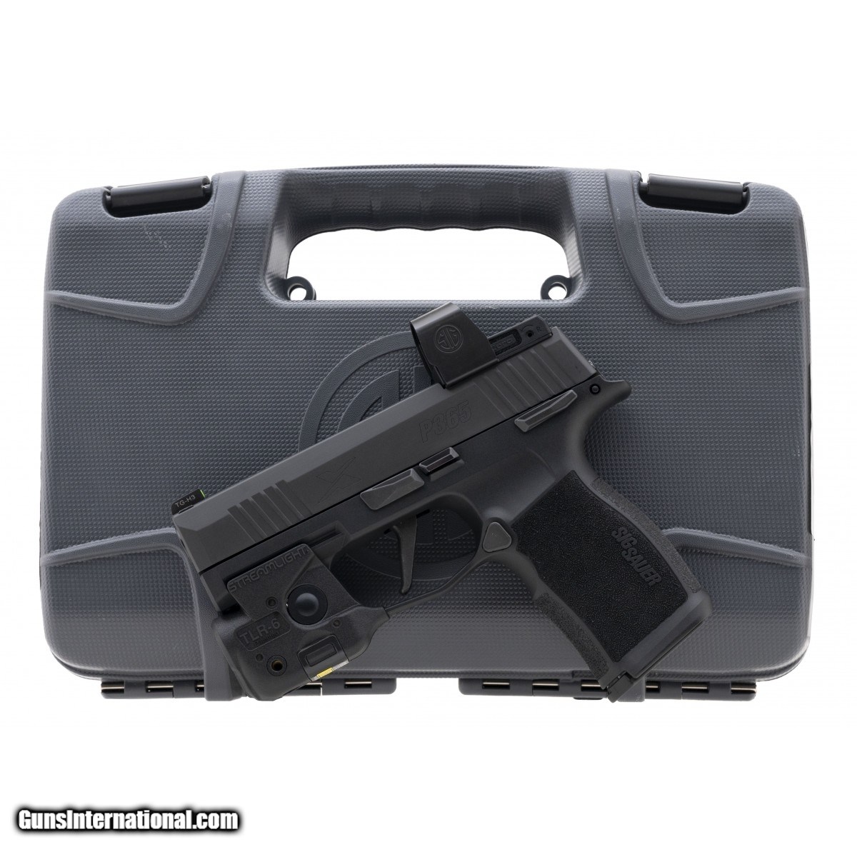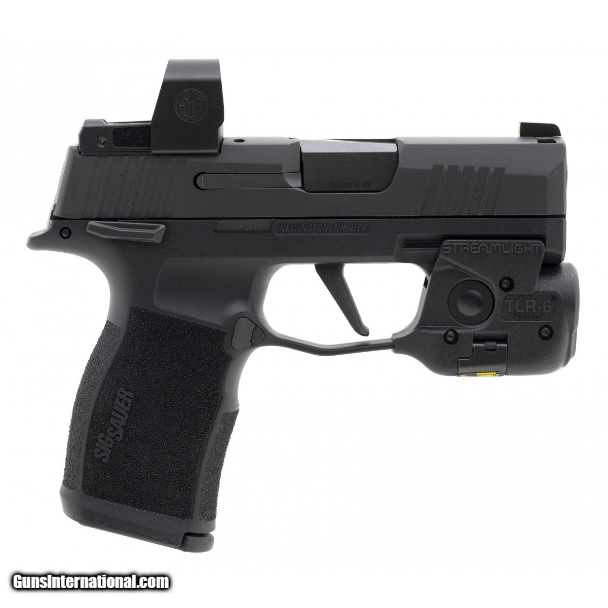 Description: " SN:66F057485. Semi-automatic polymer framed pistol with a Sig ROMEO optic with metal shield covering, &, Streamlight TLR-6 light/laser. In excellent condition. Comes in box. SOLD |