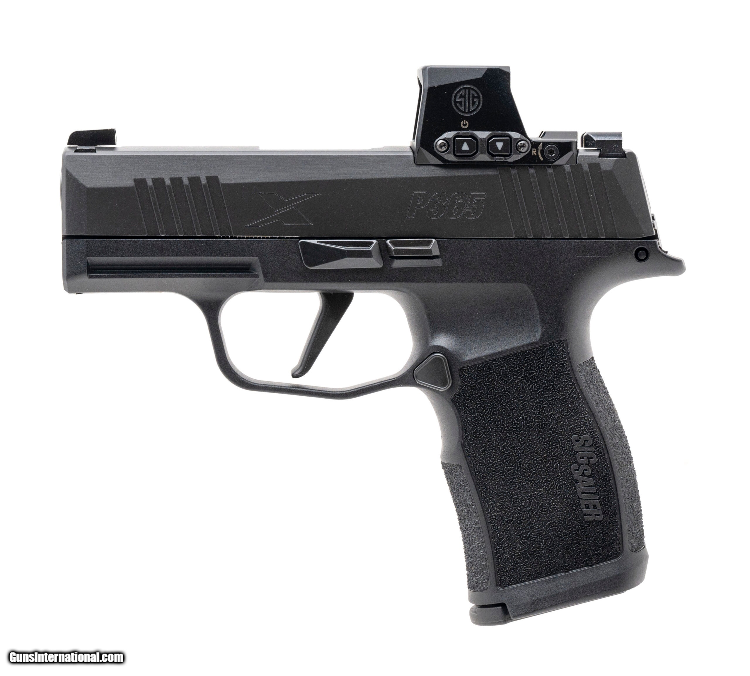 Description: "Sig Sauer P365 X Series 9mm with a 3.1"" Barrel. Sub-compact, striker fired polymer frame pistol. Black nitron finish, with XRAY3 Day/Night Sights, XSeries flat trigger, Romeo-X Compact Optic, 12rd capacity. NEW. UPC:798681689385. (STOCK PHOTO) SOLD |