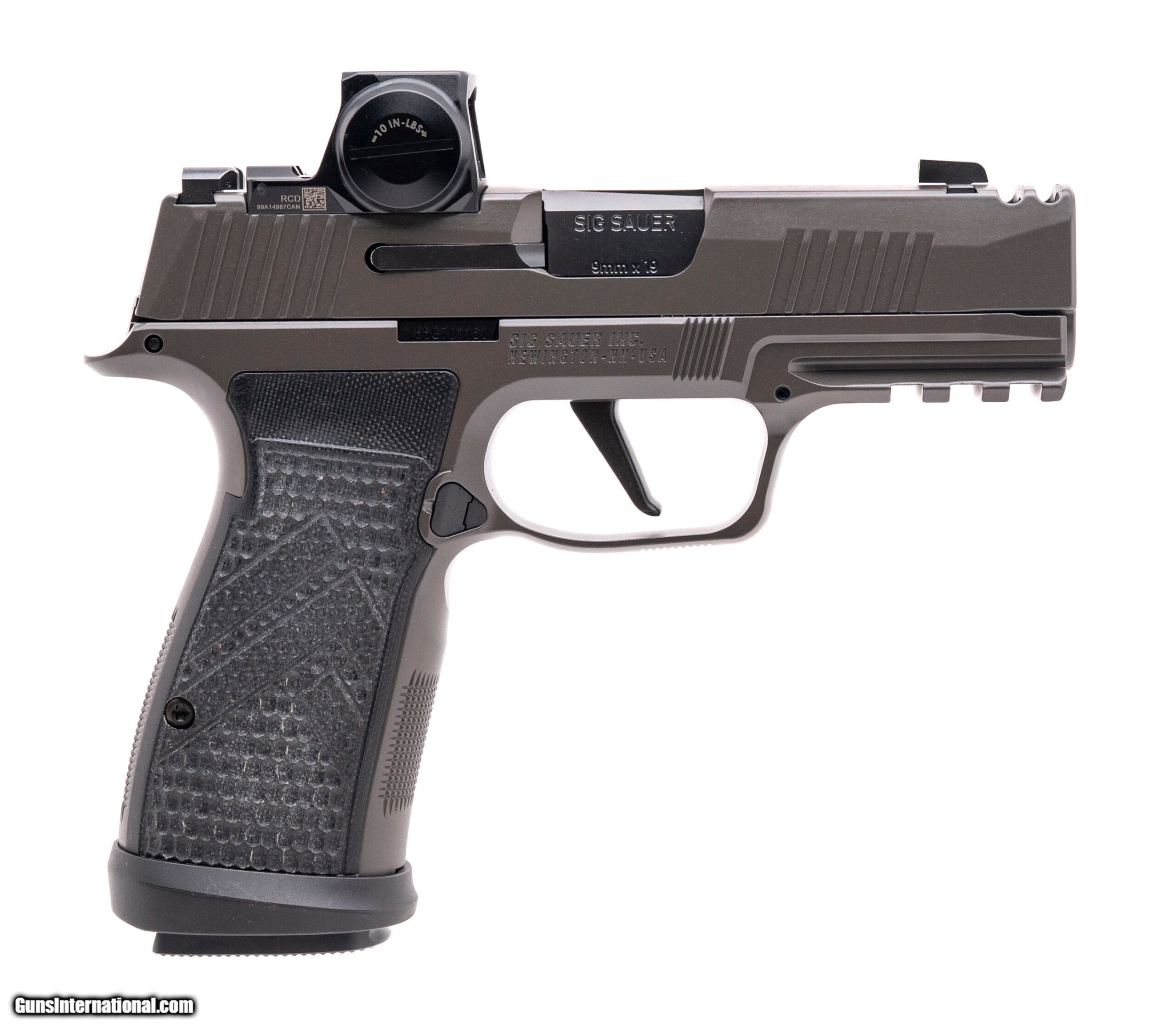 Description: "Semi-Automatic Striker Fired Pistol with a 3.1"" Barrel w/Compensator. Sub-Compact, Legion Grey Cerakote Finish, G10 Grips, Sig Romeo-X Red Dot Optic, and Sig XRAY3 Day/Night Sights. Includes 3-17rd Magazines. NEW. UPC: 798681691913 (STOCK PHOTO) SOLD |