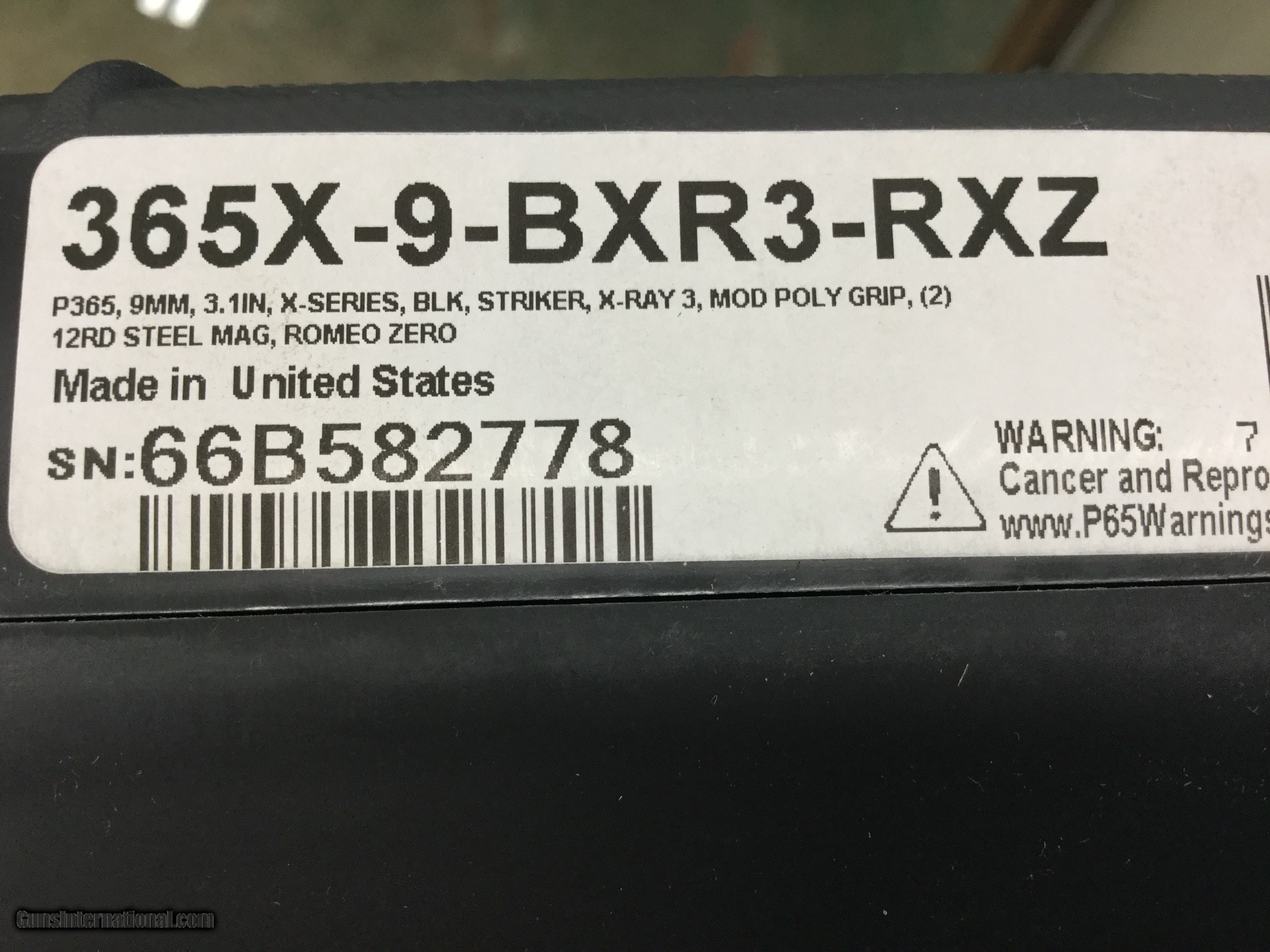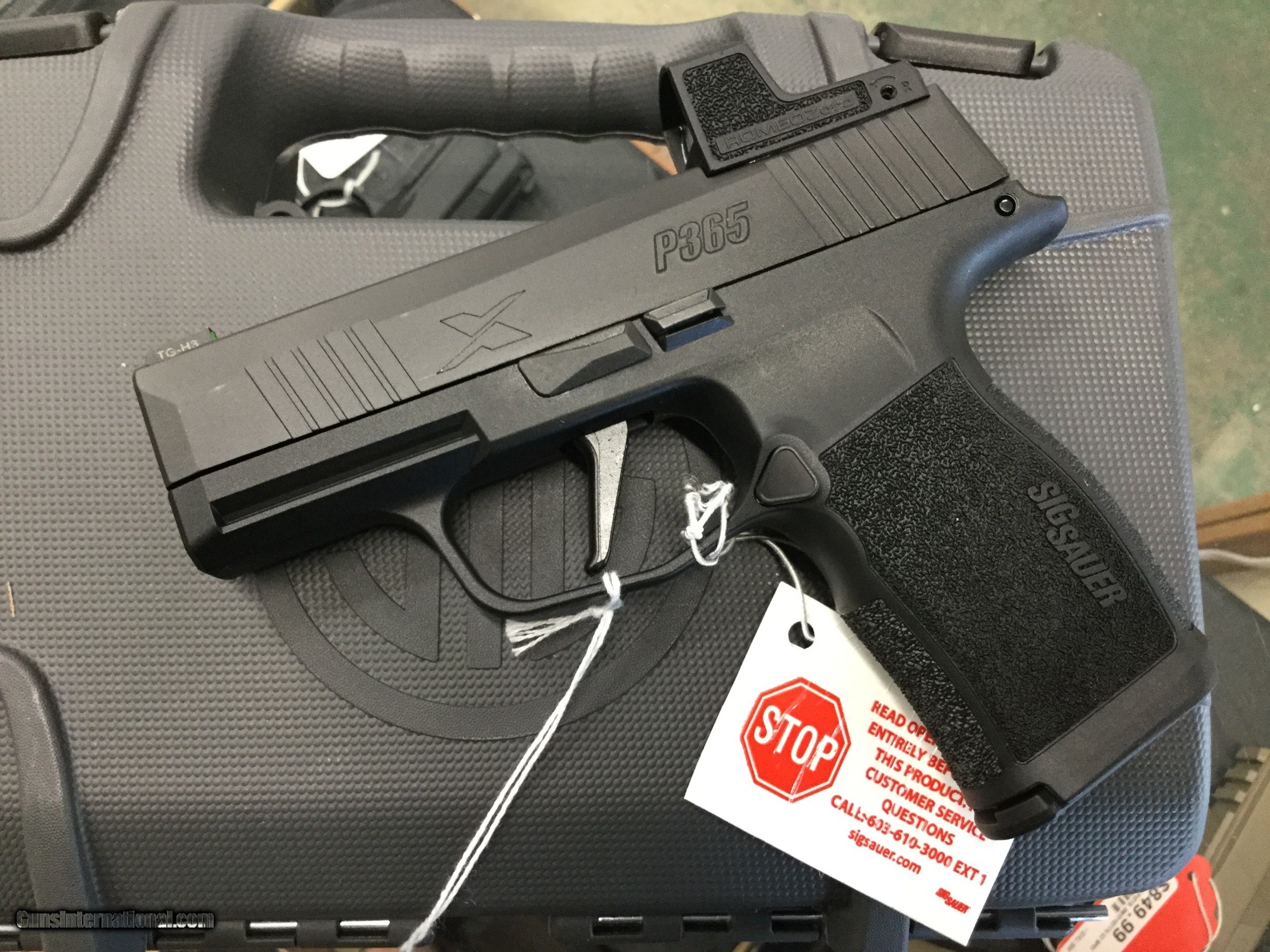 Description: ~~NEW~~ Sig Sauer 365X9BXR3RXZ P365 X 9mm Luger 3.10" 12+1 (2) Black Black Nitron Stainless Steel Slide Black Polymer Grip RomeoZero. $749.99 plus $35.00 insured and shipped to your FFL dealer. Add 3% for payments by card. "The P365X is a revolutionary concealed carry pistol that gives you more capacity, more concealability and more capability. It's the one gun you can carry every day of the year. The P365 features a patented modified double-stack magazine capable of full-size capacity. Its ergonomic design makes it more shootable than the typical pocket-sized pistols with a clean, crisp trigger pull you expect from a Sig. These features, along with the signature XSeries flat trigger and XSeries grip module, all come standard with a ROMEOZero 3 MOA optic installed and ready to go right out of the box." ~~Sports South SOLD |