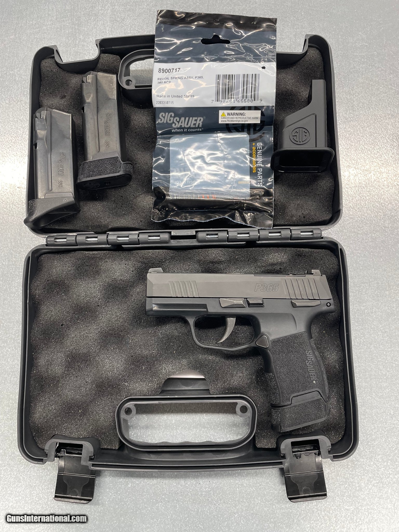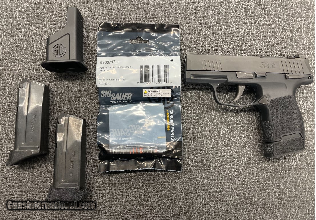 Description: Guns Listing ID: 467225 Used Sig Sauer P365 .380mm it does have some scratches and scuffs on it. Includes hard case, 2 extra mags and spring. SOLD Manufacturer: SIG SAUER Model: P365 Condition: Used - Non-Certified Barrels: 3 Gauge Info: .380 ACP Finish: blued |