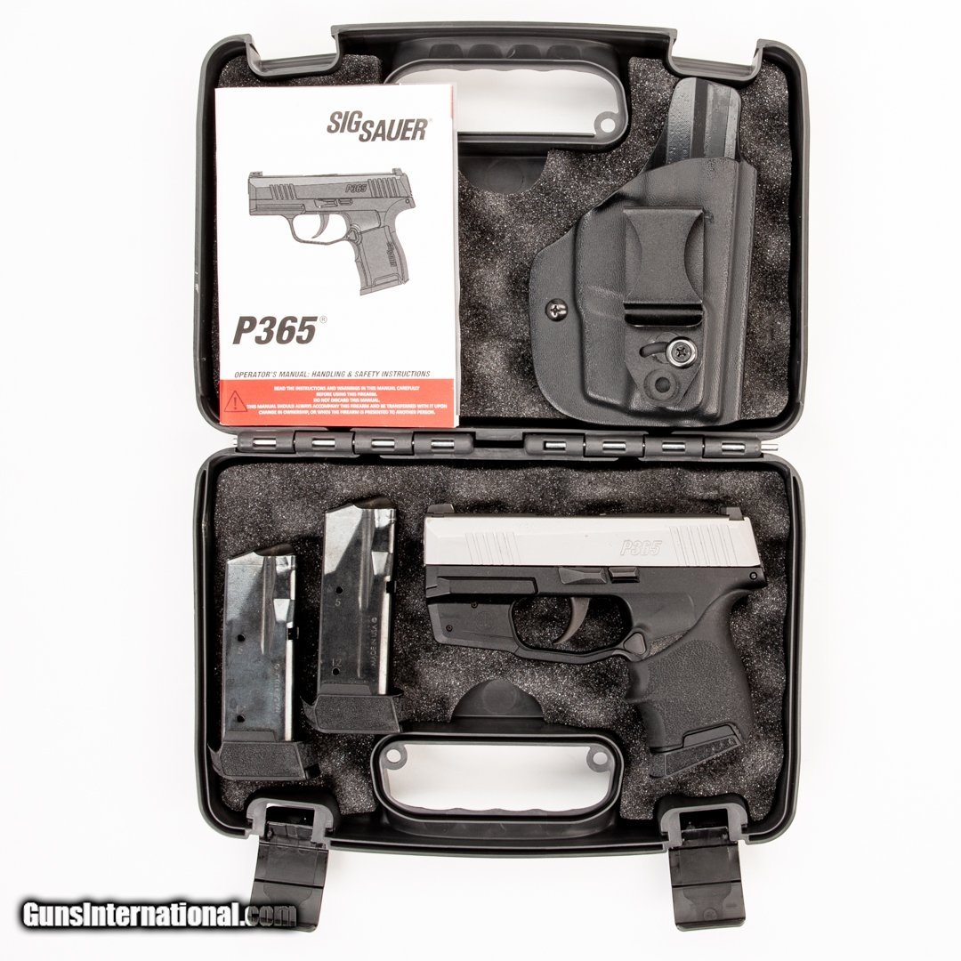 Description: Guns Listing ID: 1297998 This P365 features Hogue rubber grip sleeves and a Sig Sauer trigger guard red laser. Purchase includes the original case, manual, one 10-round magazine, two 12-round magazines, and a right-handed IWB holster. Get the best bang for your buck when you get a Certified Used Firearm . When you see the Certified Used stamp on any of our firearms, you can be confident that you‚‚re getting exactly what you want – a gun only in very good to excellent condition and held to the highest quality standard. All Certified Used Guns come with a ‚‚no questions asked‚‚ return policy . PLUS, ALL CERTIFIED USED GUNS SHIP FR SOLD Manufacturer: SIG SAUER Model: P365 Caliber Info: 9MM LUGER (9X19 PARA) Condition: Used - Non-Certified Barrels: 3.1 BARREL Finish: TWO TONE BLACK AND STAINLESS |
