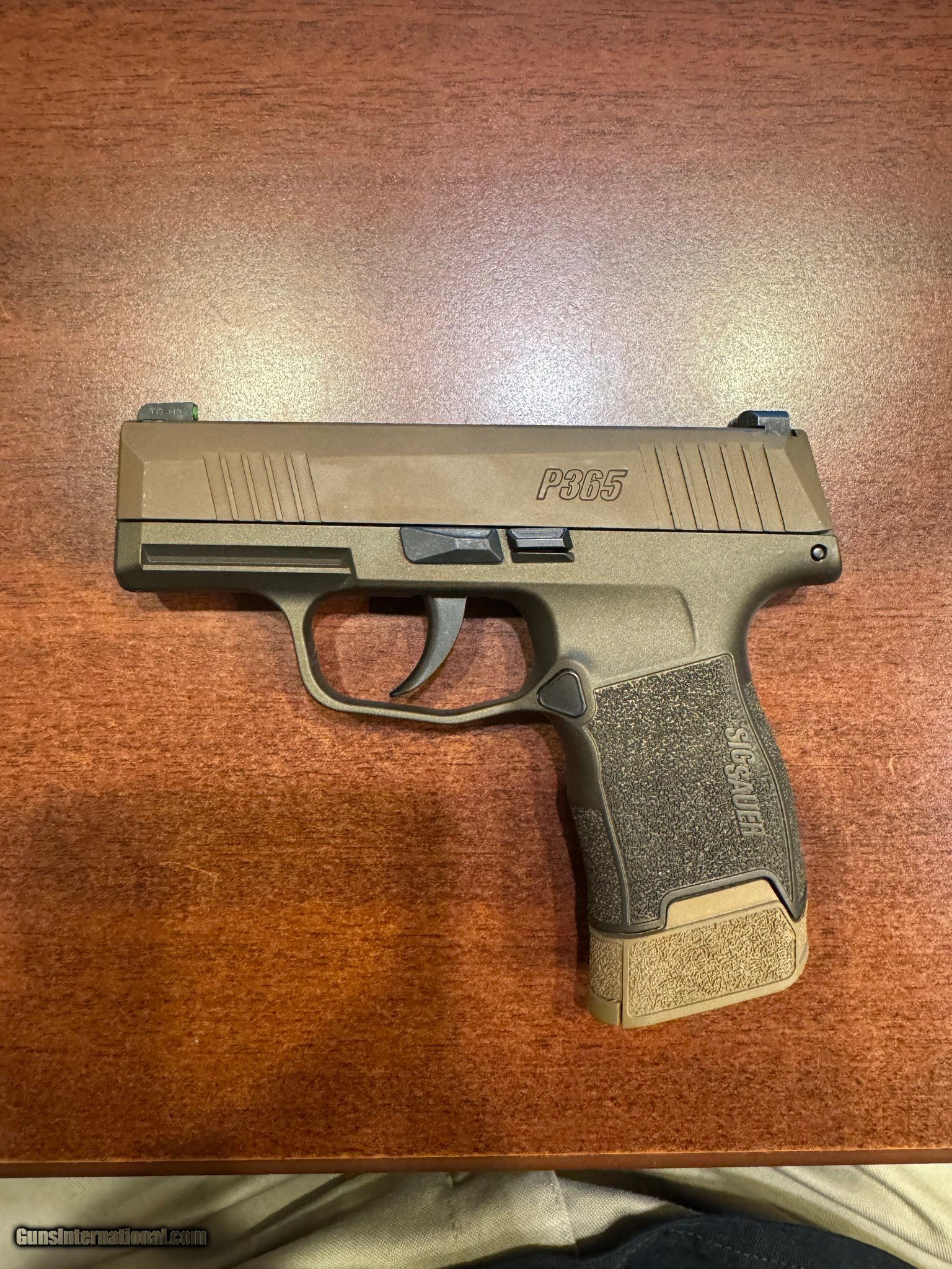 Description: Guns Listing ID: 1444205 Used, very good condition Sig Sauer P365. Has only had one mag full shot through it. It has been cerakoted a combo of tan/bronze. Has xray3 sights. Near perfect condition except for a small mark on the backplate. No box included, comes with one 12 round magazine SOLD Manufacturer: SIG SAUER Model: P365 Caliber Info: 9MM LUGER (9X19 PARA) Condition: Used - Non-Certified Barrels: 3.1 BARREL Finish: BRONZE CERAKOTE |