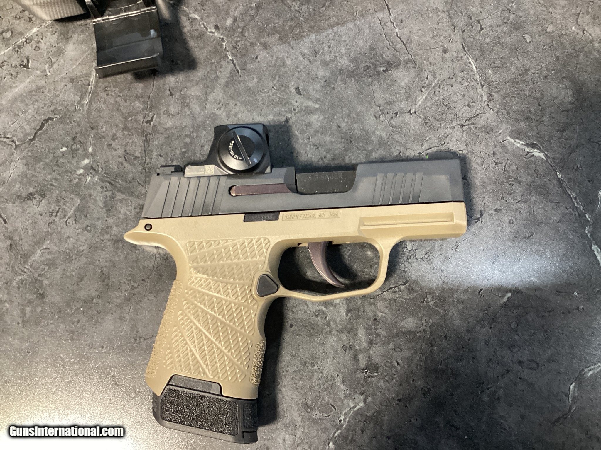 Description: Guns Listing ID: 566194 Sig P365 in great condition with wilson combat grip and sig romeo X installed. comes with 4 12 round magazines, 1 17 round magazine, Left handed holster, and case. SOLD Manufacturer: SIG SAUER Model: P365 Caliber Info: 9MM LUGER (9x19 PARA) Condition: Used - Non-Certified Barrels: 3.1" BARREL Action: SEMI AUTOMATIC Finish: black/fde |