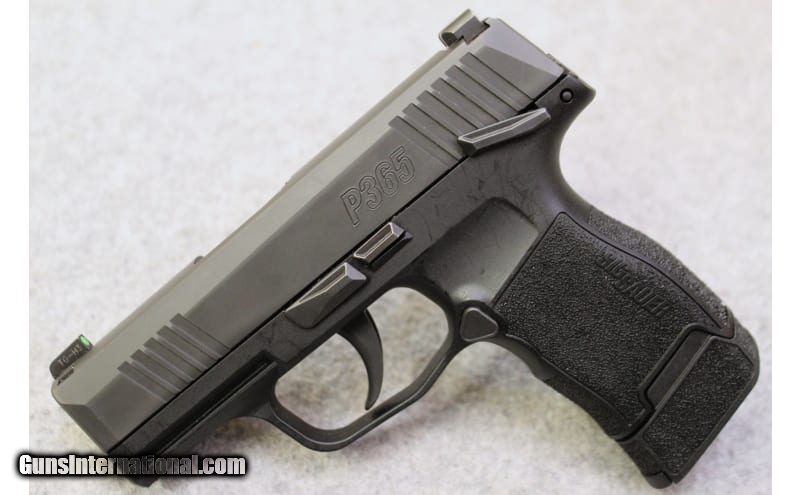 Description: This Sig P365 chambered in 9mm Luger features, manual thumb safety, three inch barrel for concealment, swappable magazine release, and night sights. 9mm Luger SOLD Metal Condition: Excellent Bore Condition: Bright Barrels: 3 inch. Weight: 1.1 lbs. Item Location: Hoffman Estates, IL |