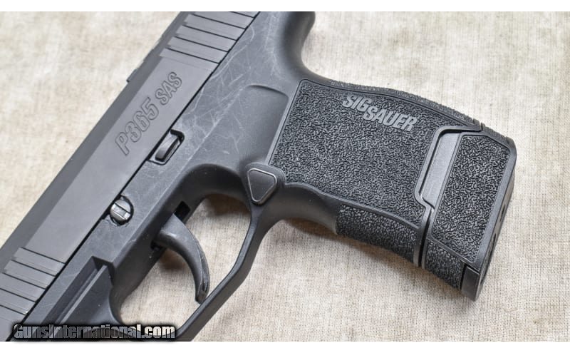 Description: This SIG SAUER P365 SAS is in overall very good condition with mild to moderate handle marks on the frame. Engineered with cutting-edge technology, this revolutionary pistol is chambered in the popular 9mm Luger caliber and offering reliability and stopping power in a compact package. Featuring the groundbreaking SIG Anti-Snag (SAS) system, the P365 SAS boasts a smooth, snag-free design, making it the perfect choice for discreet carry and quick draw scenarios. With its flush-mounted FT Bullseye fiber-tritium night sight, the P365 SAS delivers unparalleled accuracy and rapid target acquisition in any lighting conditions. 9mm Luger SOLD Chambers: 12 Round detachable magazine. Metal Condition: Very good with mild handle marks. Wood Condition: Good with moderate handle marks. See photos for detail. Bore Condition: Shiny with good rifling. Barrels: 3 Inches. Butt Pad: Textured polymer. Weight: 18oz Sights: FT Bullseye Fiber-Tritium Night Sight. Item Location: Rogers |
