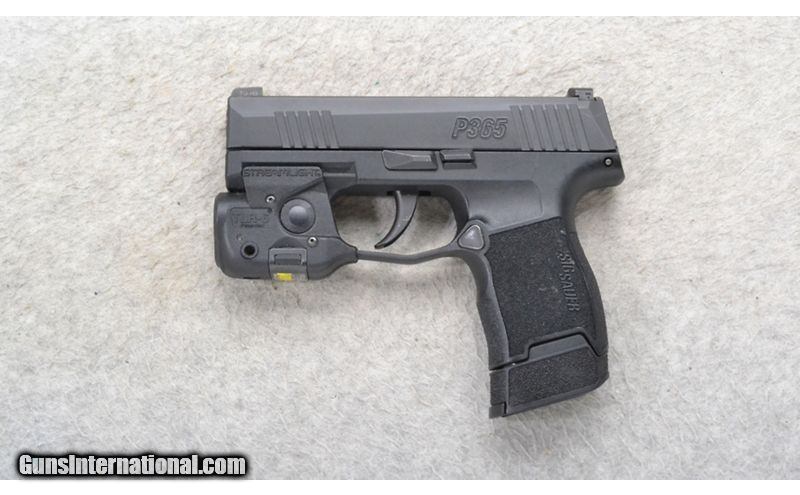 Description: This Sig Sauer Model P365 is a right hand semi-auto pistol in 9mm Cal. It has a 3 inch barrel with a front and rear serrated slide. A blade front sight and notch rear sight with 3 luminous sight dots. It is outfitted with a Streamlight red laser sight and white LED light. The grip is a textured black polymer. 9mm Parabellum SOLD Chambers: 12 round magazine. Metal Condition: Excellent. Bore Condition: Excellent. Barrels: 3 inch barrel with a front and rear serrated slide. Weight: 20 oz. Sights: Blade front. Notch rear. 3 luminous sight dots. Streamlight red laser/ white LED. Item Location: Richfield, WI |