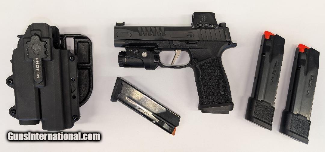 Description: Guns Listing ID: 548923 Sig Sauer, P365 Fuse, Semi-automatic, Polymer Frame Pistol, Compact, 9MM, 4.3\" Barrel, Cerakote Finish, Black, Sig Sauer LXG Grip, Fiber Optic Front and Low Profile Combat Rear Sights, 4 Magazines, (2)-21 Round Magazines and (2)-17 Round Magazines, Sig Romeo X red dot, Sig Foxtrot 1x weapons light, Alien Gear Photon RH IWB Holster factory box P365-Fuse 4.3\" Carbon Steel Barrel LXG Grip 1913 Accessory Rail Removable Magwell Fiber Optic Front and Low Profile Combat Rear Sights (2) 21 Round Magazines and (2) 17 Round Magazine Product Description Full-size capability and micro-compact concealment combine with the FUSE from SIG SAUER. Its 21+1 capacity meets a razor-thin 1\" wide grip module for unmatched versatility and shootability. FUSE delivers the accuracy and grit of a full-size pistol with its 6 7/8\" optic-ready slide, longer than any compact in its class for improved sight radius and enhanced control. Equipped with a fiber optic front sight and a 4.3\" barrel, FUSE provides improved ballistic performance from today‚s defensive ammunition for faster velocities and maximum expansion on target. All the benefits of a full-size pistol fused with the concealability of a compact. Built from the roots of the P365, a true crossover carry has arrived. The Ultimate Fusion of Capability and Concealment. FUSE by SIG SAUER. Used, LOTS OF EXTRAS! SOLD Manufacturer: SIG SAUER Model: P365 FUSE Caliber Info: 9MM LUGER (9X19 PARA) Condition: Used - Non-Certified Barrels: 4.3 BARREL Action: STRIKER FIRED Finish: BLACK Weight: 1.44 LBS. |
