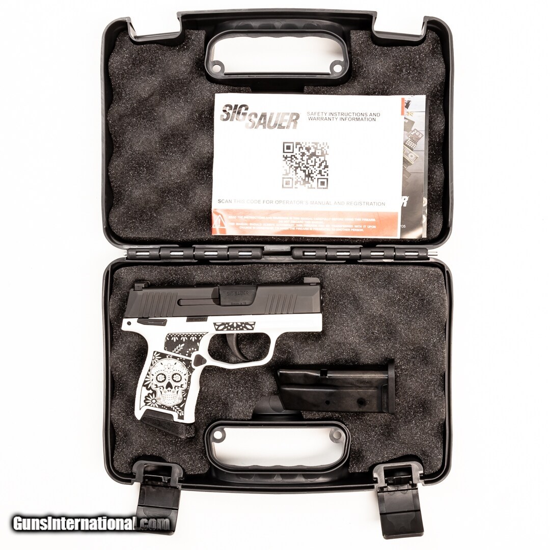 Description: Guns Listing ID: 887669 This P365 by Sig Sauer is a semi-auto, micro-compact pistol that combines greater concealability with a higher ammo capacity. This award-winning product can easily be utilized as an everyday carry weapon. It is built with a polymer frame for lightweight durability and textured polymer grips to ensure a firm hold. Also rated for use with +P ammunition, this pistol boasts an integral accessory rail and premium grade sights. If you’re looking for a dependable carry gun the Sig Sauer P365 is a great option. Lightweight with great ergonomics and unquestioning reliability, this handgun truly is just about the best option on the market. This handgun features a custom engraved frame of a candy skull and includes night sights, two 10-round magazines, and the original case. Get the best bang for your buck when you get a Certified Used Firearm . When you see the Certified Used stamp on any of our firearms, you can be confident that you’re getting exactly what you want – a gun only in very good to excellent condition and held to the highest quality standard. All Certified Used Guns come with a ‘no questions asked’ return policy . PLUS, ALL CERTIFIED USED GUNS SHIP FREE! SOLD Manufacturer: SIG SAUER Model: P365 NITRON MICRO-COMPACT Caliber Info: 9MM LUGER (9X19 PARA) Condition: Used - Certified Barrels: not specified Finish: TWO-TONE |