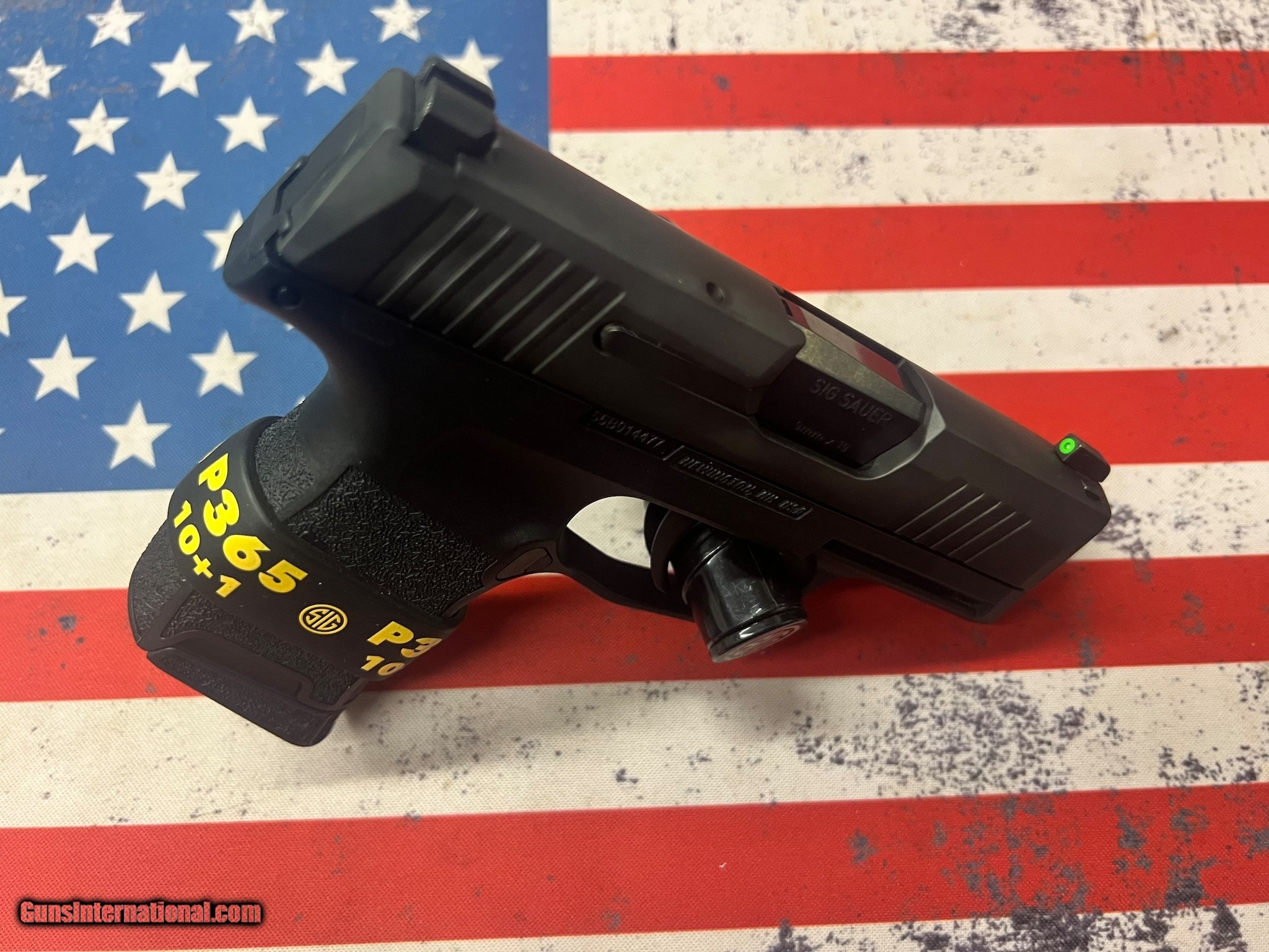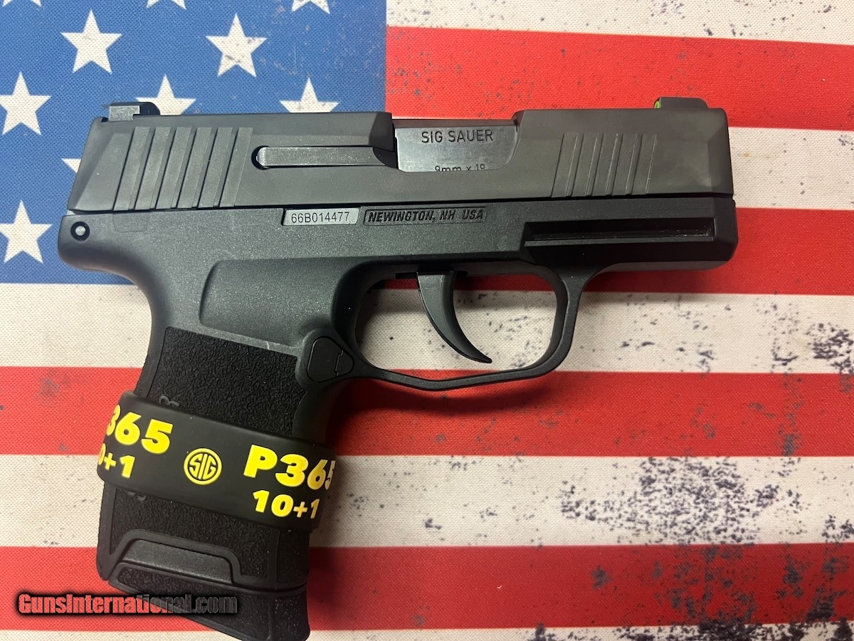 Description: Guns Listing ID: 574689 Sigsauer 365. With 2-10 round magazine. With Sigsauer night sights. With original box owners manual lock and sticker SOLD Manufacturer: SIG SAUER Model: P365 NITRON Caliber Info: 9MM LUGER (9X19 PARA) Condition: Used - Non-Certified Barrels: 3.1" barrel |