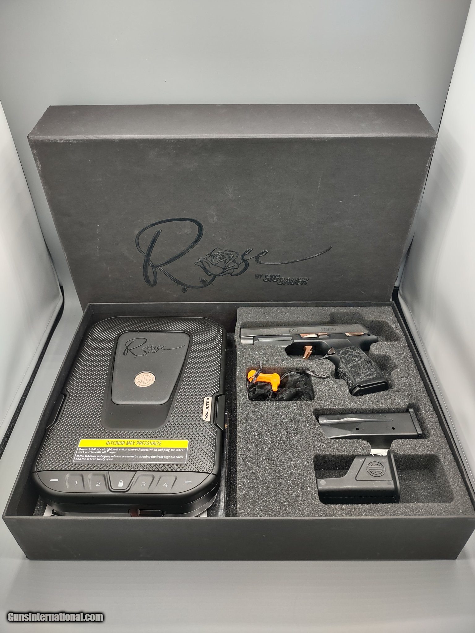 Description: Guns Listing ID: 559580 This pistol is the Sig Sauer p365 Rose Edition. It features custom Rose gold Accent, a sleek matte black finish, and a factory laser-engraved slide. Perfect for carry or collection, this pistol combines elegance with performance. This pistol comes with 2- 12 round magazines, magazine loader, 9mm dummy rounds, and a Sig Rose vaultek safe case. 1800820-EMM-AH SOLD Manufacturer: SIG SAUER Model: P365 ROSE XL Caliber Info: 9MM LUGER (9x19 PARA) Condition: Used - Non-Certified Barrels: 3.1" BARREL Action: SEMI AUTOMATIC |