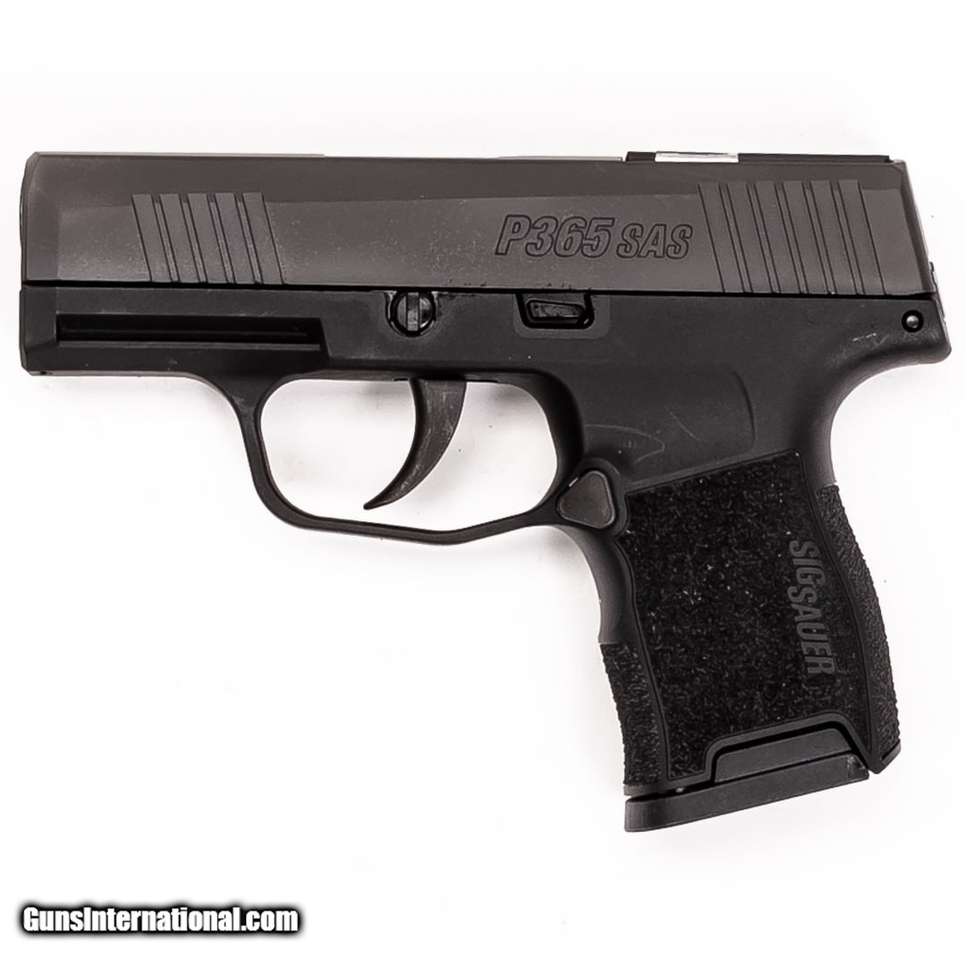 Description: Guns Listing ID: 335759 For sale is a Sig Sauer P365 SAS chambered in 9mm. It\"s an award-winning handgun and an excellent option for personal protection. This P365 SAS is in very good condition and comes with the original case, manual, and three 10-round magazines. SOLD Manufacturer: SIG SAUER Model: P365 SAS Caliber Info: 9MM LUGER (9X19 PARA) Condition: Used - Certified Barrels: 3.1 BARREL Finish: BLACK |