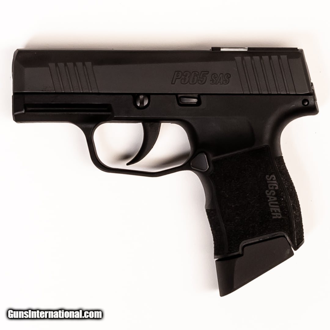 Description: Guns Listing ID: 521733 For sale is a Sig Sauer P365 SAS chambered in 9mm. This pistol won the \"Best New Handgun\" award in 2019 and makes a fantastic conceal carry sidearm. It features Sig‚‚s Bullseye night sights and a ported barrel. This handgun features two 10-round magazines and the original case SOLD Manufacturer: SIG SAUER Model: P365 SAS Caliber Info: 9MM LUGER (9X19 PARA) Condition: Used - Certified Barrels: 3.1 BARREL Finish: BLACK |