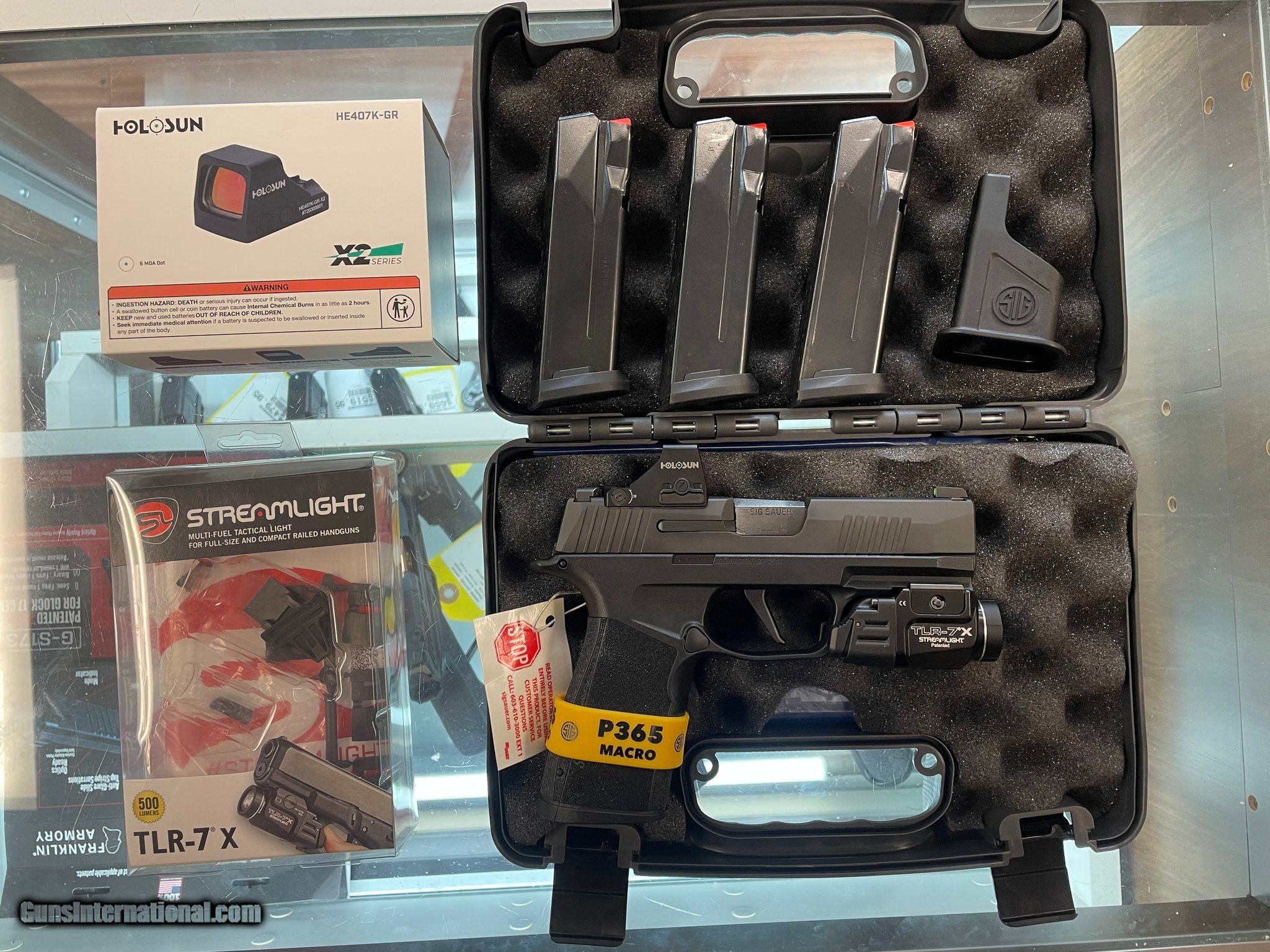 Description: Guns Listing ID: 535325 Sig Sauer P365 macro standard. Includes Holosun 407K-GRN, streamlight TLR-7X, original OEM box and 3 17 round magazines. SOLD Manufacturer: SIG SAUER Model: P365 X-MACRO Caliber Info: 9MM LUGER (9X19 PARA) Condition: Used - Non-Certified Barrels: 3.7 BARREL Action: STRIKER FIRED Finish: BLACK Weight: 1.375 LBS. |