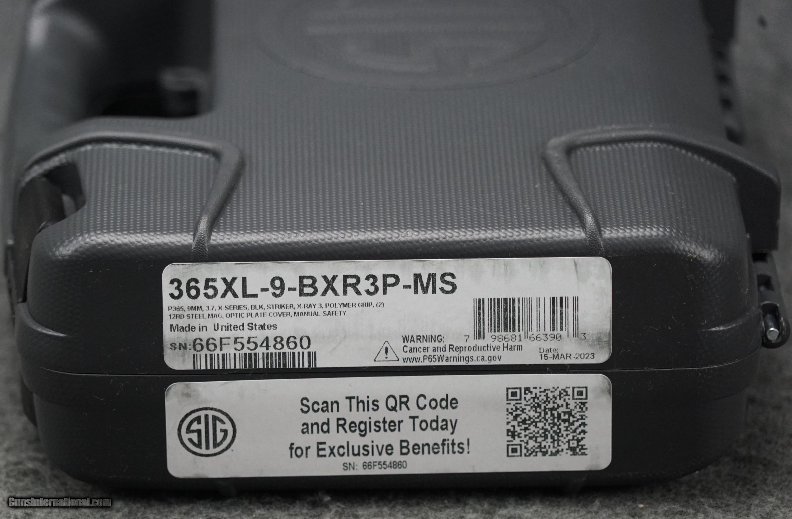 Description: Brand Sig Sauer Category Pistols Model P365 XL Caliber 9mm Luger Capacity 12+1 Action Striker Fire Frame Finish Black OAL 6.60" Frame Material Stainless Steel Hand Right Slide Finish Black Nitron Slide Material Stainless Steel Slide Description Optic Ready / Serrated Barrel Finish Black Barrel Material Carbon Steel Magazine Type OEM Grips Black Polymer Sight Configuration XRAY3 Day / Night Includes 2 Magazines Safety Manual Barrel Length 3.70" Max Capacity 12 Trigger Flat Weight 20.70 oz Frame Description Stainless Steel Frame w / Beavertail SOLD Handgun Caliber: 9x19mm Parabellum (9mm Luger, 9x19mm NATO) Manufacturer: Sig Sauer Model: P365 XL Barrel Length: 3.7" Barrel Condition: BRAND NEW |