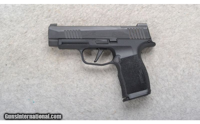 Description: This Sig Sauer Model P365 XL is a right hand semi-auto pistol in 9mm Cal. It has a 3.5 inch barrel with a front and rear serrated slide. A blade front sight and notch rear sight with 3 luminous sight dots. The grip is a textured black polymer. It has a lower accessory rail. 9mm Parabellum SOLD Chambers: 12 round magazine. Metal Condition: Excellent. Bore Condition: Excellent. Barrels: 3.5 inch barrel with a front and rear serrated slide. Weight: 22 oz. Sights: Blade front. Notch rear. 3 luminous sight dots. Item Location: Richfield, WI |
