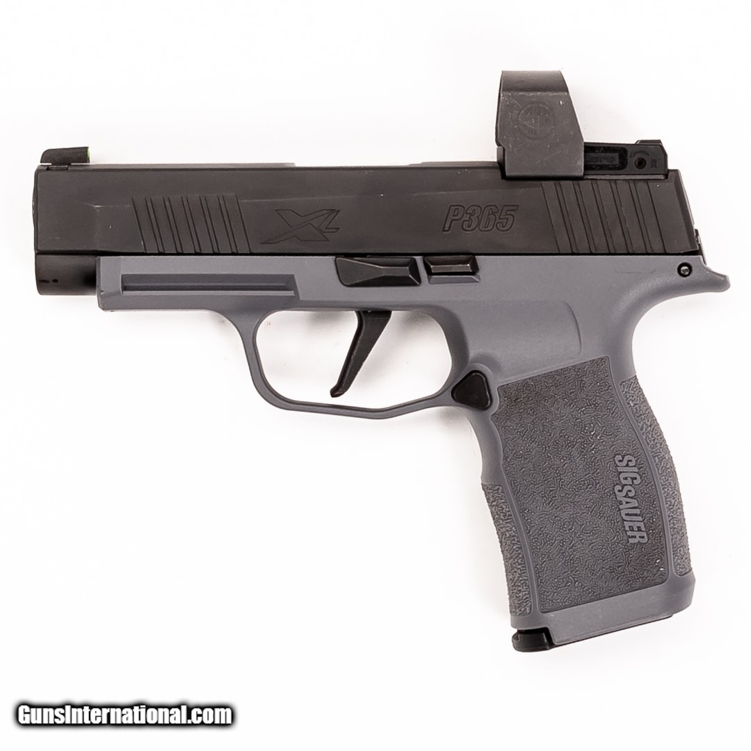 Description: Guns Listing ID: 343634 The Sig Sauer P365 XL is an enlarged version of the award-winning P365. This upscaled variant is an excellent self-defense sidearm, thanks to the increased grip surface and more ammunition capacity per magazine. If you're in the market for a rugged and dependable general-purpose handgun, the P365 XL is a trustworthy option. This P365 XL Romeo Zero is in very good condition. It has a 6 MOA Romeo Zero optic and comes with the original X-Ray day/night sights and screws. Three 12-round magazines are also included, along with a Raven Concealment minimalist holster and a Sig Sauer inside-the-waistband holster with a claw. SOLD Manufacturer: SIG SAUER Model: P365 XL ROMEO ZERO Caliber Info: 9MM LUGER Condition: Used - Certified Barrels: 3.7 BARREL Finish: BLACK |