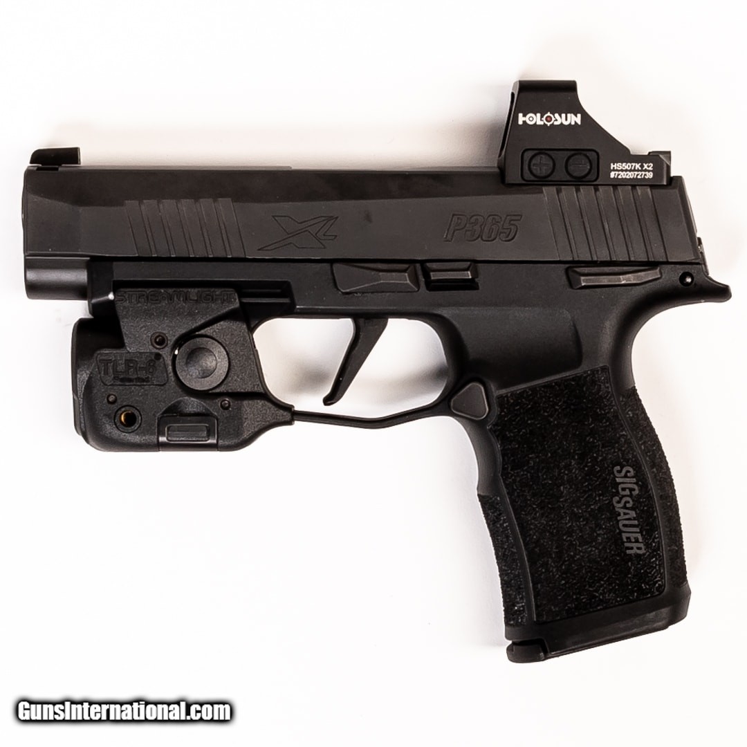 Description: Guns Listing ID: 421417 The Sig Sauer P365 XL is an enlarged version of the award-winning P365. This upscaled variant is an excellent self-defense sidearm, thanks to the increased grip surface and more ammunition capacity per magazine. If you're in the market for a rugged and dependable general-purpose handgun, the P365 XL is a trustworthy option. This P365 XL is equipped with a Holosun 507k x2 and a Streamlight TLR-6. Purchase includes the original case, manual, and two 12-round magazines. SOLD Manufacturer: SIG SAUER Model: P365 XL Caliber Info: 9MM LUGER Condition: Used - Certified Barrels: 3.7 BARREL Finish: BLACK |