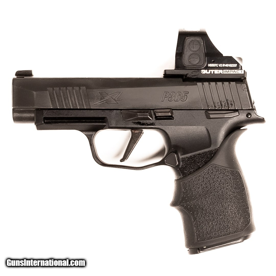 Description: Guns Listing ID: 835830 The Sig Sauer P365 XL is an enlarged version of the award-winning P365. This upscaled variant is an excellent self-defense sidearm, thanks to the increased grip surface and more ammunition capacity per magazine. If you‚‚re in the market for a rugged and dependable general-purpose handgun, the P365 XL is a trustworthy option. This P365 XL is equipped with night sights and a red dot. Purchase includes the original case and two 12-round magazines. Get the best bang for your buck when you get a Certified Used Firearm . When you see the Certified Used stamp on any of our firearms, you can be confident that you’re getting exactly what you want – a gun only in very good to excellent condition and held to the highest quality standard. All Certified Used Guns come with a ‘no questions asked’ return policy . PLUS, ALL CERTIFIED USED GUNS SHIP FREE SOLD Manufacturer: SIG SAUER Model: P365 XL Caliber Info: 9MM LUGER (9X19 PARA) Condition: Used - Certified Barrels: 3.7 BARREL Finish: BLACK |