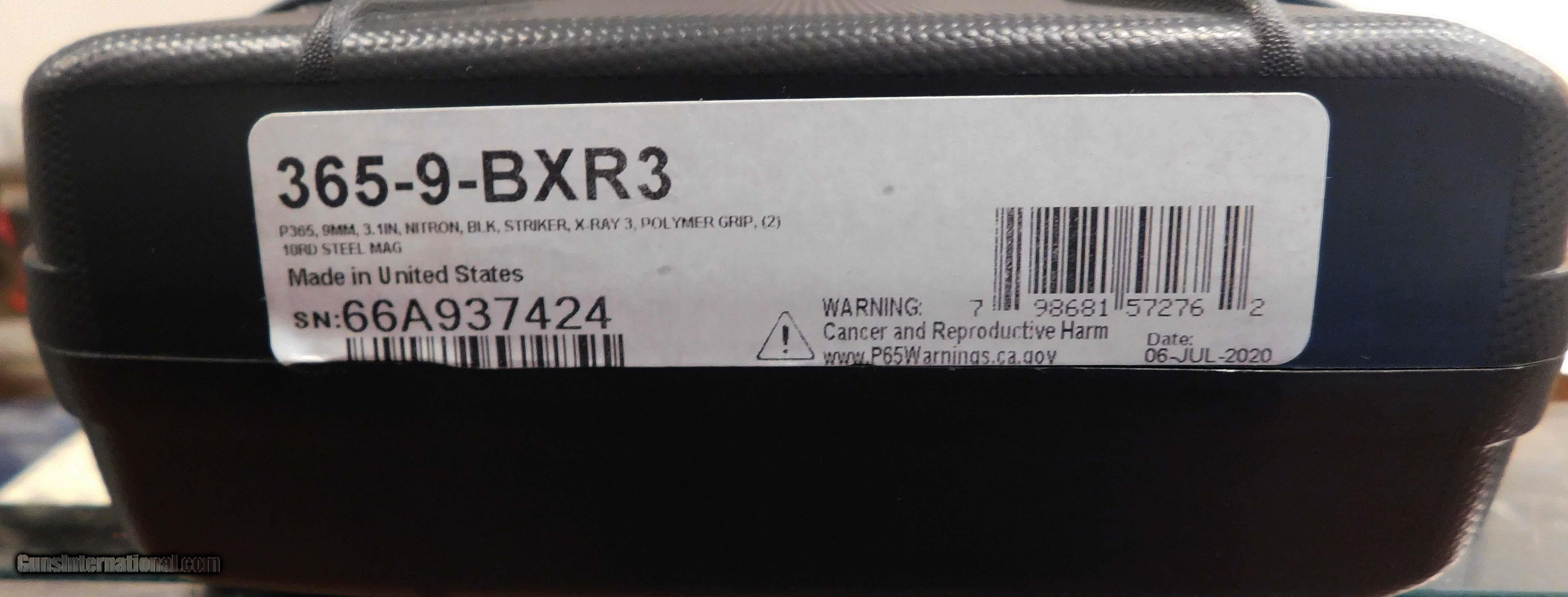 Description: SIG SAUER P365 IN 9MM CAL., WITH 3" BARREL. COLOR MATTE. CONDITION NEW IN BOX. SERIAL NUMBER 66A937424. SIG SAUER MODEL P365 IN 9MM, COMES WITH TWO FACTORY MAGAZINES HARD CASE PAPERS, NEW IN BOX OVERALL CONDITION, (NOT FOR SALE IN MASS.), OUR STOCK # D1853 SOLD |