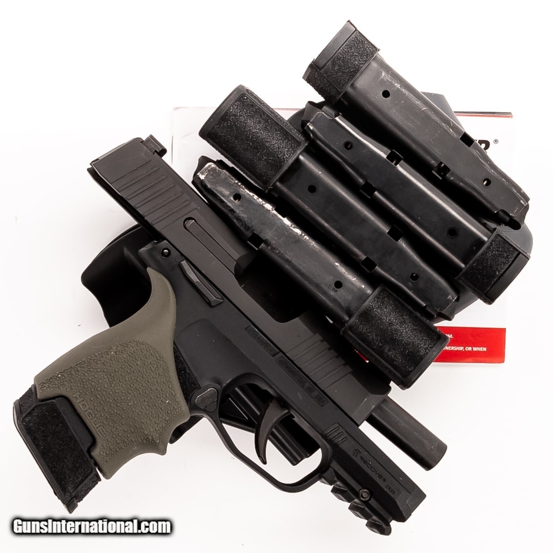 Description: Guns Listing ID: 379551 Ideal for concealed carry, this Sig Sauer P365 offers a micro-compact size with a full-sized capacity. Chambered in 9mm, this innovative semi-auto handgun is built on a polymer frame, while the durable polymer grips are textured to ensure the user has a firm and steady grasp. This pistol comes with two 15-round magazines, three 12-round magazines, a Recover Tactical picatinny rail, a Hogue beavertail rubber grip, an ambi Sig holster, another IWB holster, two spare mag plates, and the manual. SOLD Manufacturer: SIG SAUER Model: P365 Caliber Info: 9MM LUGER Condition: Used - Certified Barrels: 3.1 BARREL Finish: BLACK |
