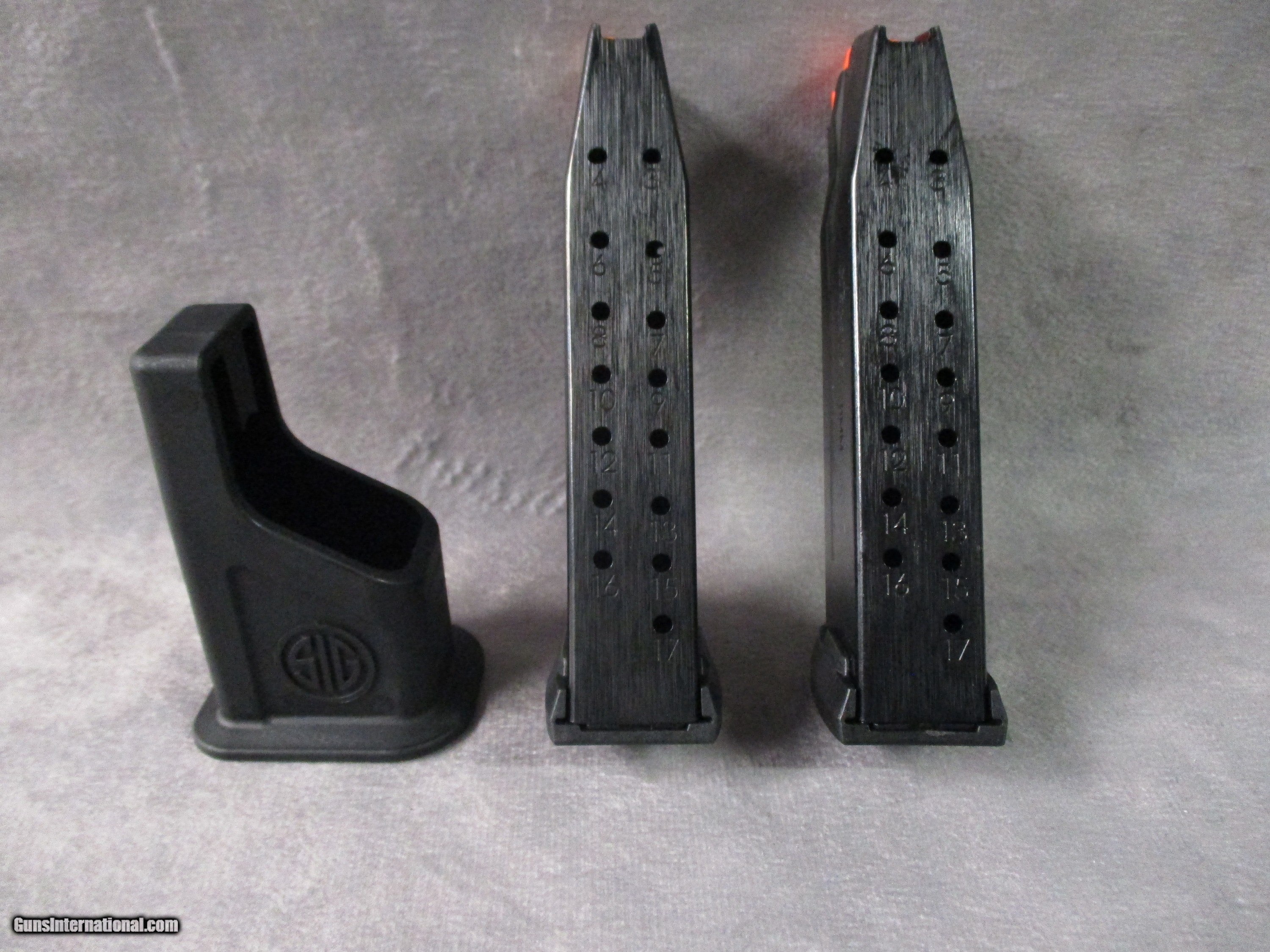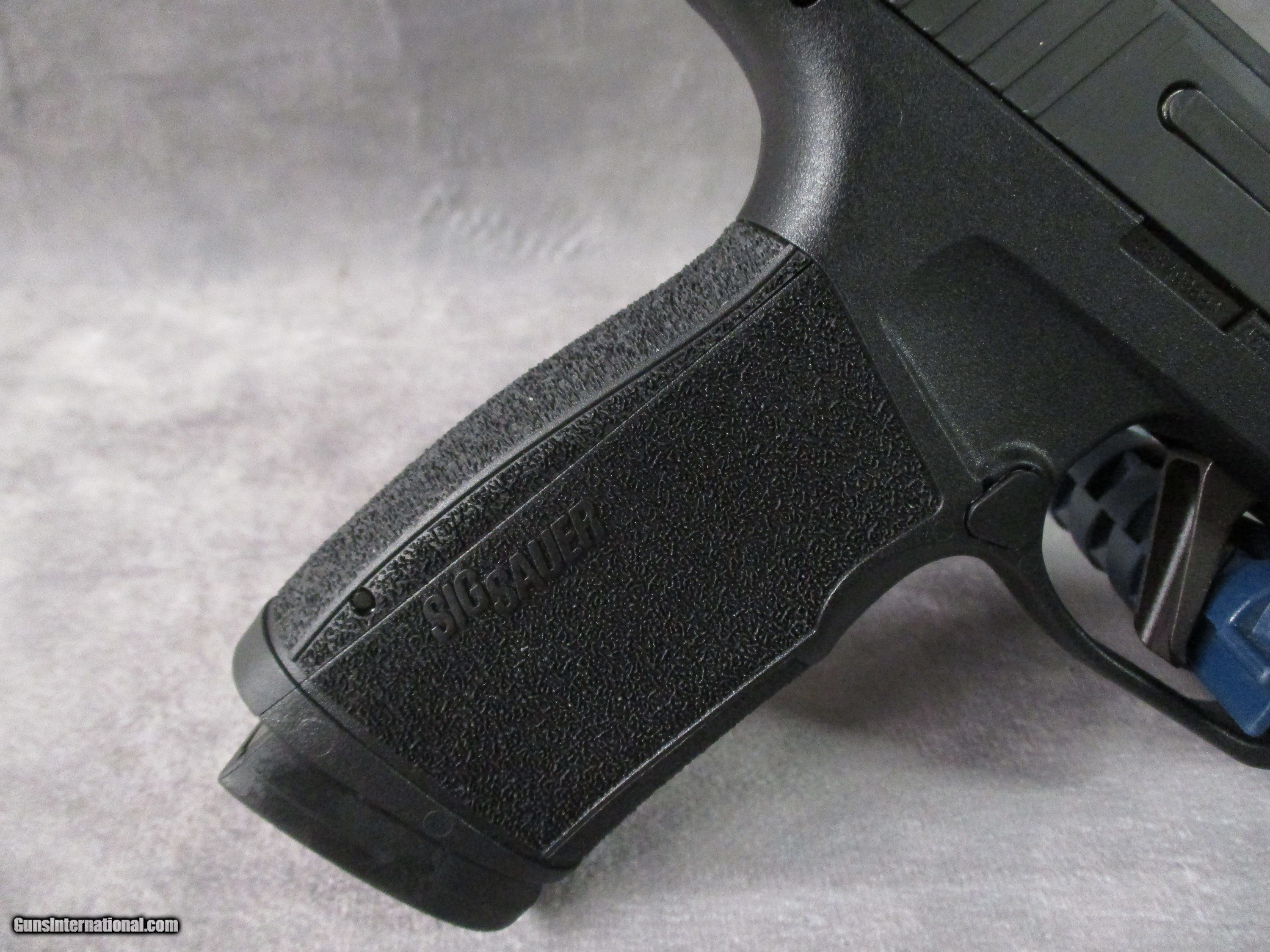 Description: The P365X-Macro is the ultimate in high-capacity compact self-defense pistol. At a width of only 1.1 inches, the X-Macro holds 17 rounds in the magazine plus one in the chamber. It is essentially a modified P365XL. The slide features an integrated double-port compensator and the 3.1” barrel from a standard P365. The recoil spring is the longer type used in the P365XL. The sighting setup is different from most P365 models in that the rear sight and optic cut cover plate are entirely separate from each other. This is critically important, as it allows the shooter to keep their rear sight if an optic sight is installed. While the factory sights are a little short for it, a super-tall version of the XRAY3 sight set is available from Sig which are tall enough to allow for co-witness between the sights and a red dot, usually Sig’s own Romeo Zero Elite model. Another nice feature of the X-Macro is the incorporation of a MIL-STD-1913 into the frame rather than the standard proprietary rail found on the conventional P365. The grip is designed to allow the use of interchangeable back straps to accommodate different hand sizes. Naturally, there are three sizes of back strap: small, medium, and large, each one denoted by a single letter on the back of the strap. The use of a flat face on the trigger is intended to provide more surface area and leverage than the typical curved trigger. The compensator is intended to reduce muzzle flip by 30 percent. This new-in-box, compact pistol comes with two 17-round magazines. With its small size, light weight, recoil-reducing features, and optic ready capabilities, the P365X-Macro is one of the best CC pistols on the market. SOLD Handgun Caliber: 9x19mm Parabellum (9mm Luger, 9x19mm NATO) Manufacturer: Sig Sauer Model: P365X-Macro Serial Number: 66F499694 Bore: Rifled, 6 grooves, 1:10 inches (1 in 254 mm) RH twist Ejectors: Auto-ejection Condition: New in Box Barrels: Carbon Steel Barrel Type: Tilting Action: Semi-automatic, Browning type short recoil system, striker fired double action. Triggers: Flat faced Stock: Polymer grip frame Fore End: M1913 accessory rail Finish: Nitron Weight: 21.5 oz. Sights: X-Ray3 Day/Night Sights, sight radius 5.1 inches (130 mm) Manufacture Date: January 2023 Case: Sig Sauer case |
