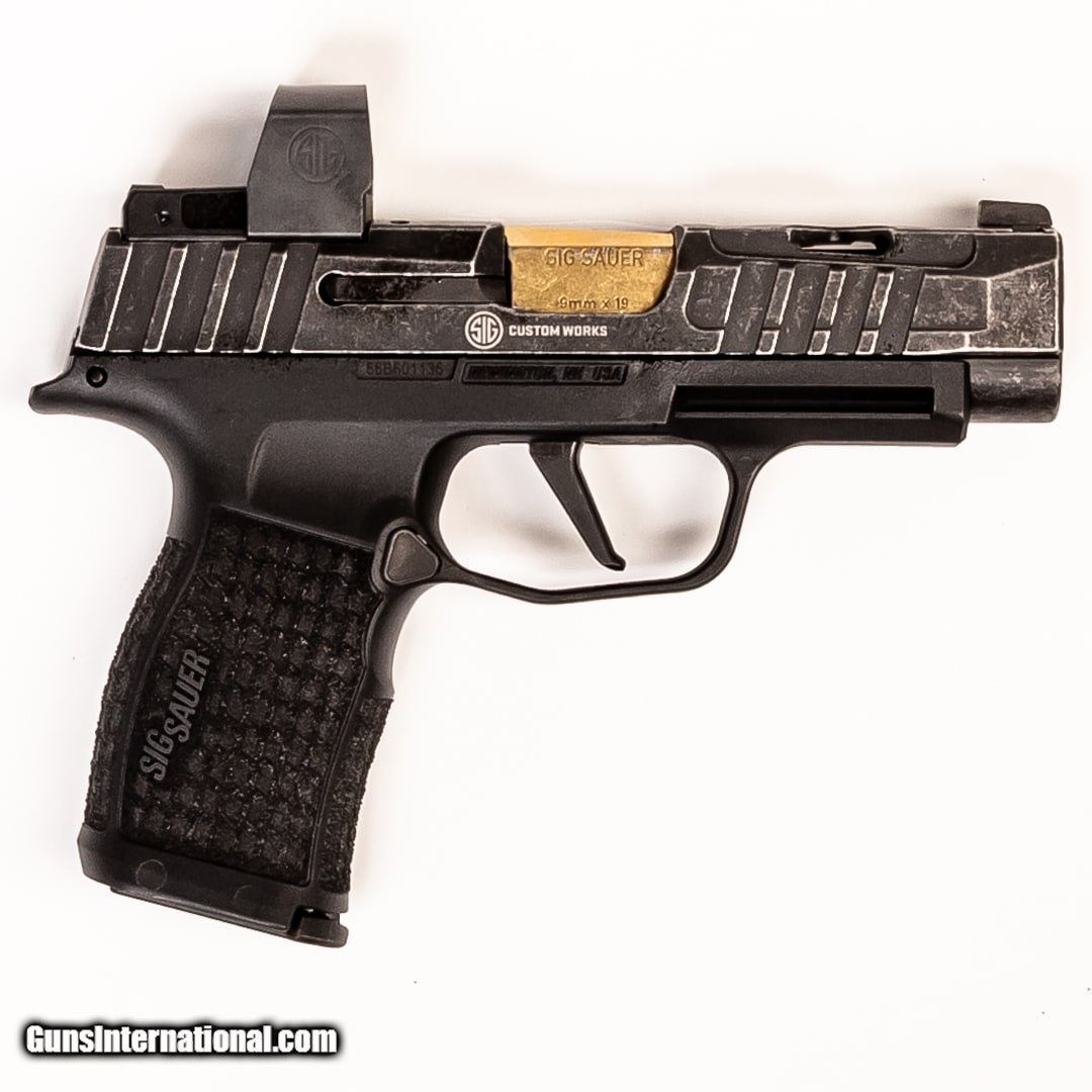 Description: Guns Listing ID: 488597 This listing is for a Sig Sauer P365XL Spectre. It comes with a Sig Romeo Zero red dot, 3-12 round magazines, additional black 3.5\" barrel, spare Sig back sight, tools, top slide plate, the original case, and a manual SOLD Manufacturer: SIG SAUER Model: P365XL SPECTRE Caliber Info: 9MM LUGER Condition: Used - Certified Barrels: 3.7 BARREL Finish: BLACK |