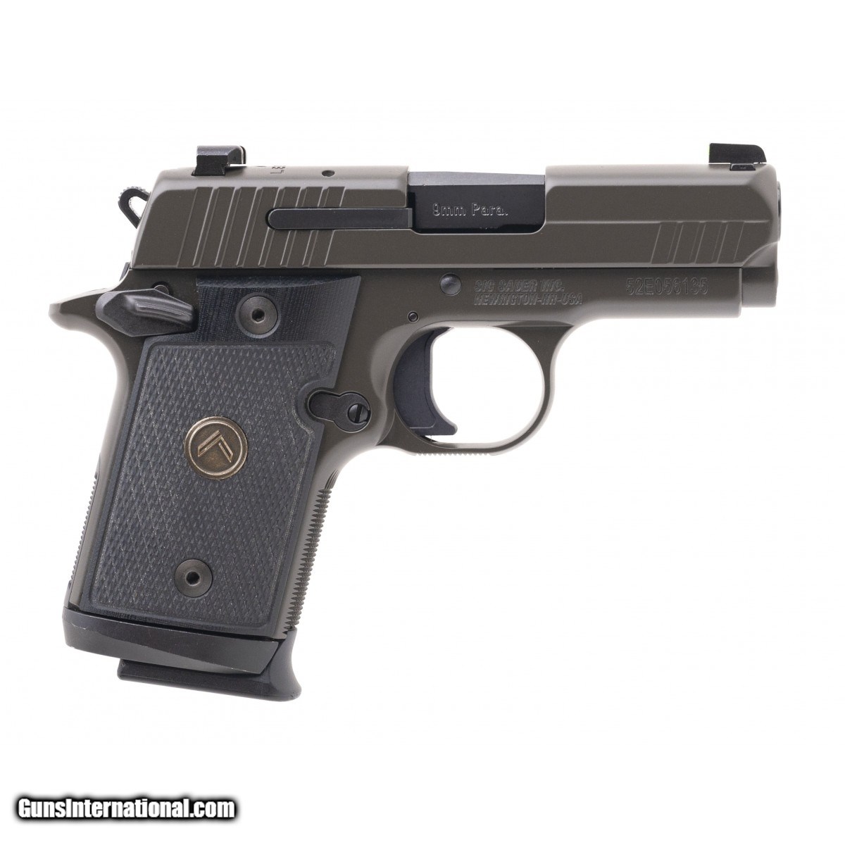 SN:52E056135. Modern production. 9mm with a 3"" barrel. Bore is excellent. Sub compact Handgun. Metal is excellent. Grips are excellent. Has 3 dot sights and ambidextrous safety. Overall condition is excellent. Comes with box and 2 extra magazines. (CONSIGNMENT)