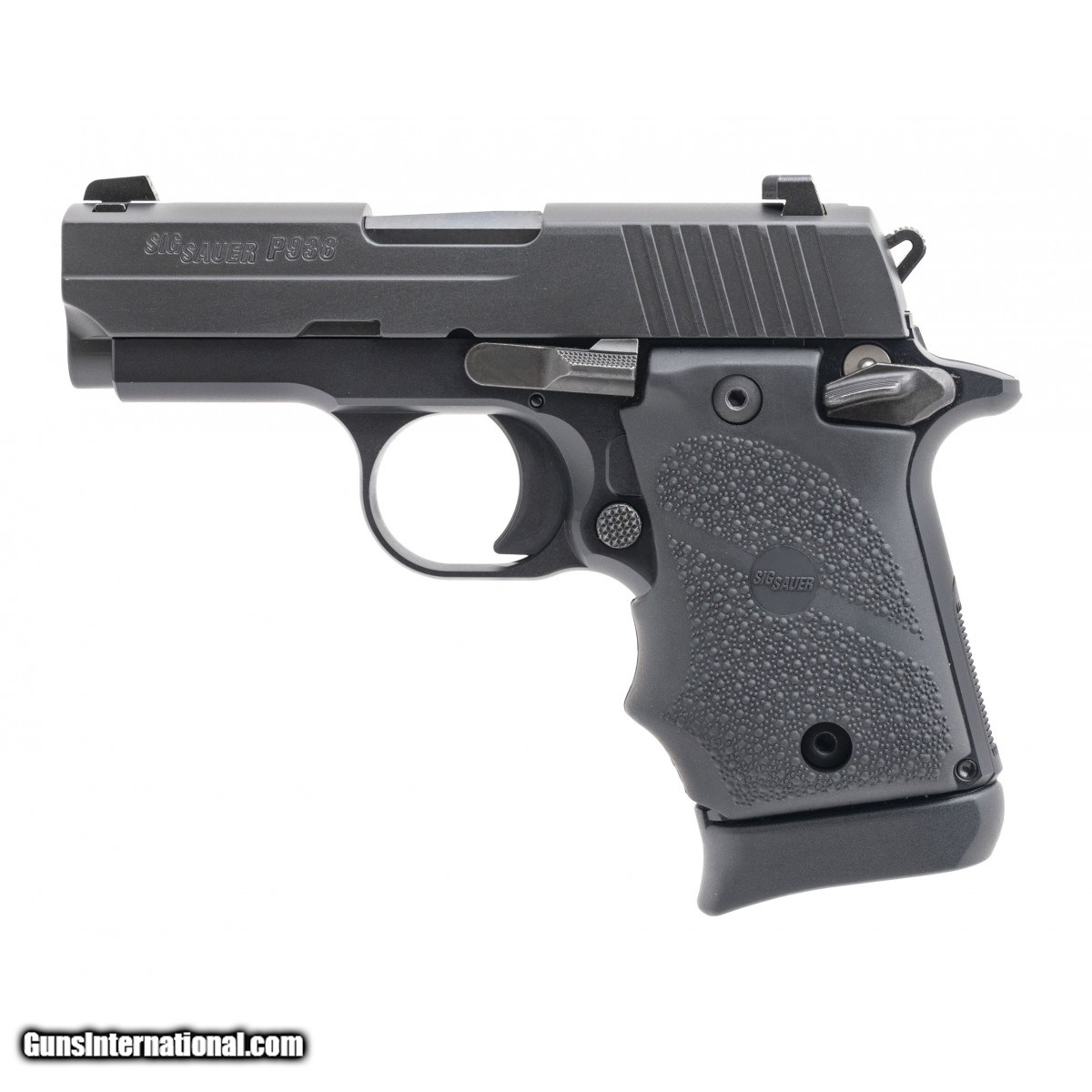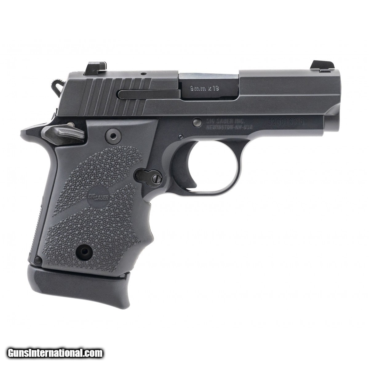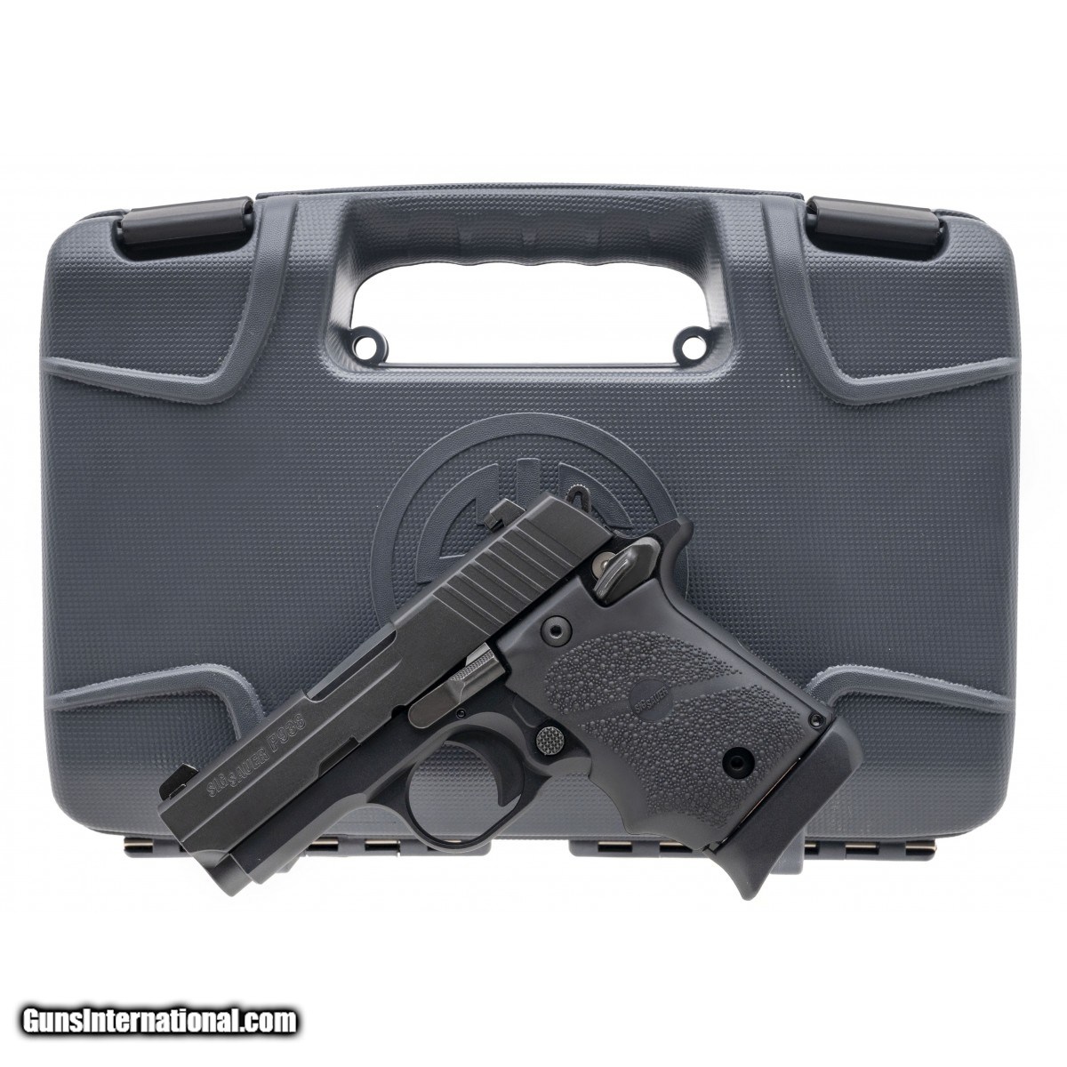 Sub-compact with a 3"" Barrel, alloy frame, manual thumb safety, black rubber grips and SIGLITE night sights, and 1 magazine. NEW. UPC: 798681443352.
