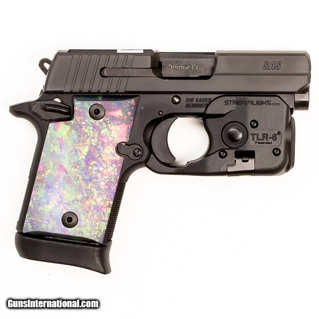 Description: Guns Listing ID: 879055 Compact yet powerful, this Sig Sauer P938 SAS is a semi-auto handgun modeled after the M1911. It is single-action only and slightly larger than the P238. Although the safety is ambidextrous, the magazine release is located on the left side only. Small, lightweight, accurate, and dependable, the P938 SAS is well-suited for concealed carry. This model is equipped with a Streamlight TLR-6 light/laser. Purchase includes the original case and five 7-round magazines. Get the best bang for your buck when you get a Certified Used Firearm . When you see the Certified Used stamp on any of our firearms, you can be confident that you’re getting exactly what you want – a gun only in very good to excellent condition and held to the highest quality standard. All Certified Used Guns come with a ‘no questions asked’ return policy . PLUS, ALL CERTIFIED USED GUNS SHIP FREE! SOLD Model: P938 SAS - 938-9-SAS2B Caliber Info: 9MM LUGER (9X19 PARA) Condition: Used - Certified Barrels: not specified |