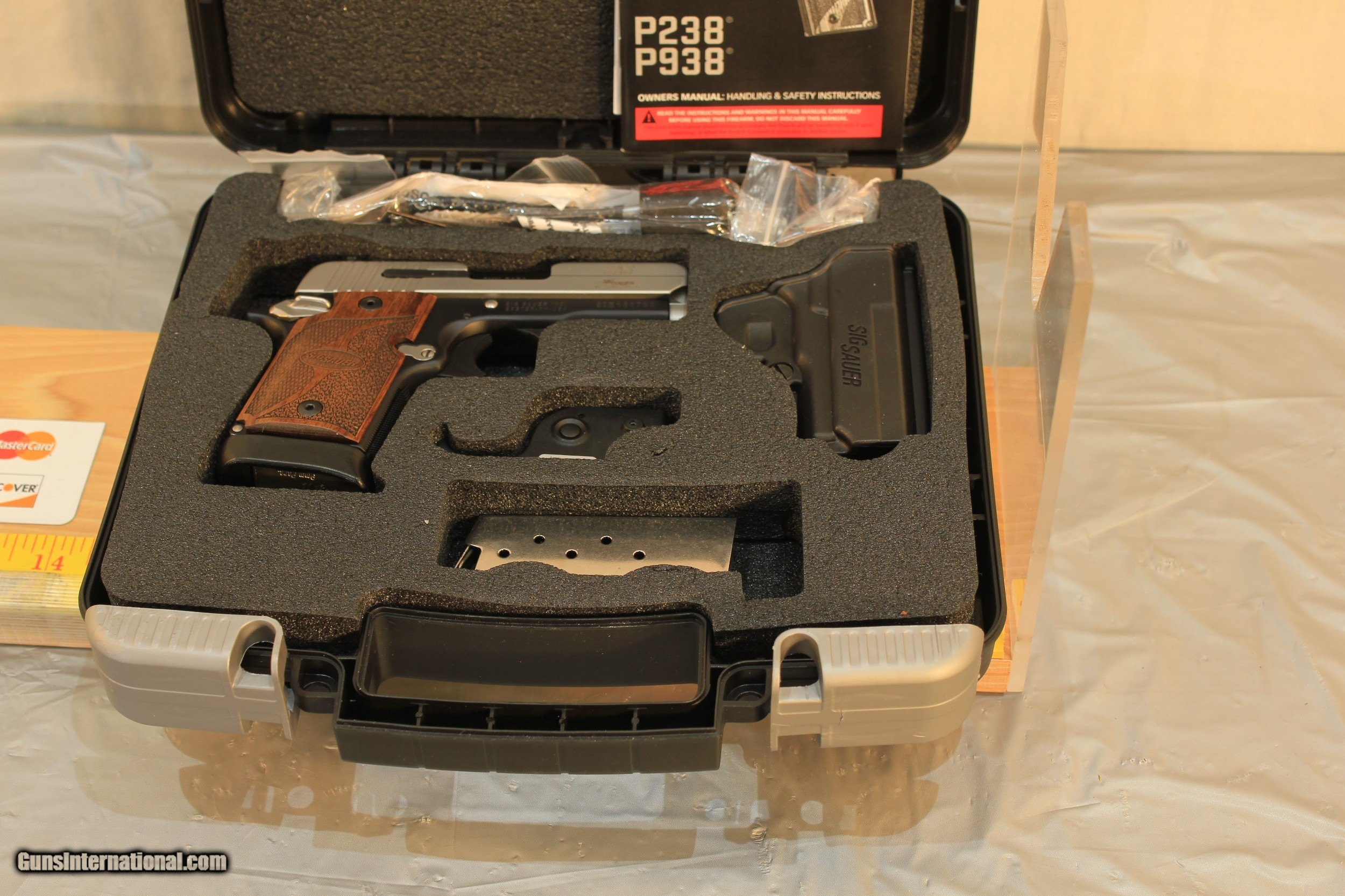 Description: Sig-Sauer Model 938 pistol in 9 MM Luger Two magazines, red dot sight and night sights. Sig-Sauer belt holster and original pistol case and papers. Extra bartteries for Red dot sight. This pistol is in as new condition. With the batteries this has to be shipped ground by the USPS. 3 inch barrel. The gun weighs 1 pound. $25.00 Shipping via USPS ground. SOLD |