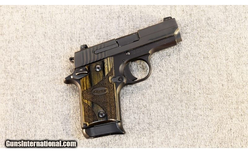 Description: This is a pre-owned Sig Sauer model P938 in 9mm Luger 9mm Luger SOLD Metal Condition: "Very good overall with a few small scratches, a few small rub marks and light wear to the finish of the barrel and sights Wood Condition: Very good with light handling wear Bore Condition: Clean with good lands Barrels: 3 Triggers: SA Butt Pad: Textured laminated wood Weight: 1 lb. Sights: 3-dot Siglite night sights Item Location: Glendale, AZ |
