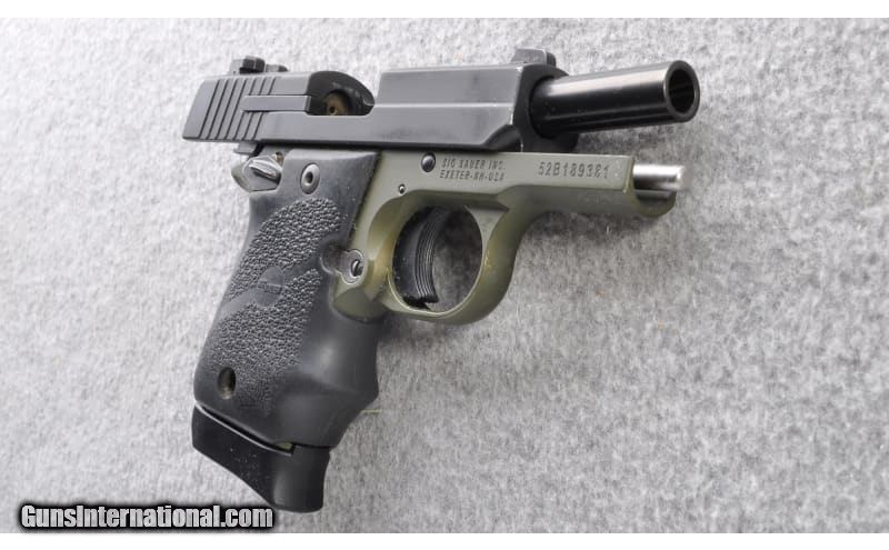 Description: The P938 is easy to carry concealed with SIGLITE Night Sights, all metal frame, single action trigger and fabulous accuracy in a pistol of this size. An ambidextrous safety lever makes for ease of use for left and right-handed shooter. 9mm Luger SOLD Chambers: 9 mm Parabellum in a seven round detachable magazine semiautomatic pistol Metal Condition: "Good, shows some holster wear on slide and frame Bore Condition: Bright and sharp Barrels: 3 Triggers: Single Action Weight: 20 oz. Sights: Siglite night sights Item Location: Grand Junction, CO |