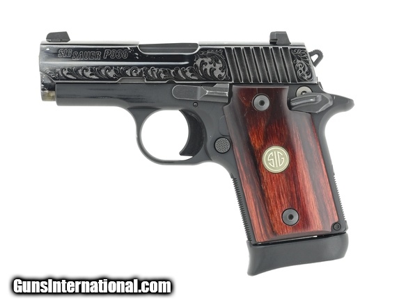 Sig Sauer P938 9mm caliber pistol. Deluxe engraved pocket pistol. Excellent condition.