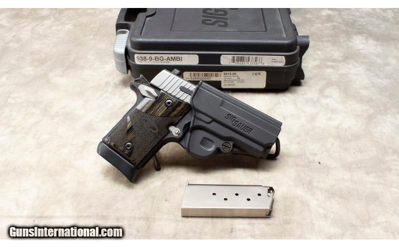 Description: Sig Sauer P938 Blackwood is a great carry gun in the same action as a 1911. This gun is in very good condition and will come with the factory box and 2 magazines. 9mm Luger SOLD Metal Condition: Very Good Wood Condition: Very Good Bore Condition: Very Good Barrels: 3 inches Weight: 17oz Sights: Night Sights Item Location: Ft. Myers, FL |