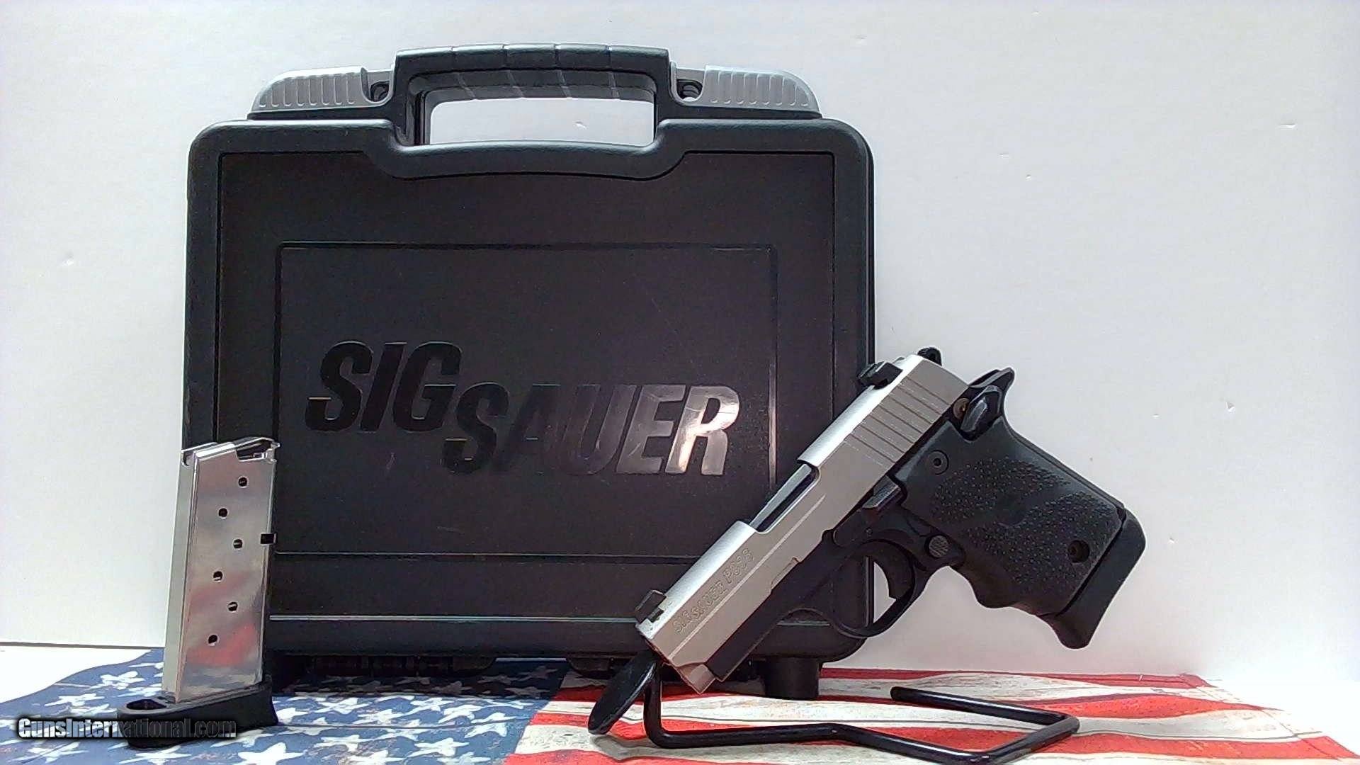 Description: Guns Listing ID: 535512 Pre-owned in \"LIKE NEW\" condition. This is a great pistol for conceal carry or home protection. The two 7 round magazines mean you can be firing while your friend is loading the next one for you when you‚re at the range. The Sig Sauer P938 is a compact, single action pistol with a 3\" barrel chambered in 9mm. It features a black finish, hogue rubber grips and the slide is topped off with a set of Siglite Night Sights. It includes two 7 round magazines. Firearm as shown. They say a picture is worth a thousand words. These photos are the best statement of condition; please review them carefully before purchasing. SOLD Manufacturer: SIG SAUER Model: P938 BRG (BLACK RUBBER GRIPS) Caliber Info: 9MM LUGER (9X19 PARA) Condition: Used - Non-Certified Barrels: 3 BARREL Action: SINGLE ACTION Finish: BLACK Weight: 0.91 lbs. |