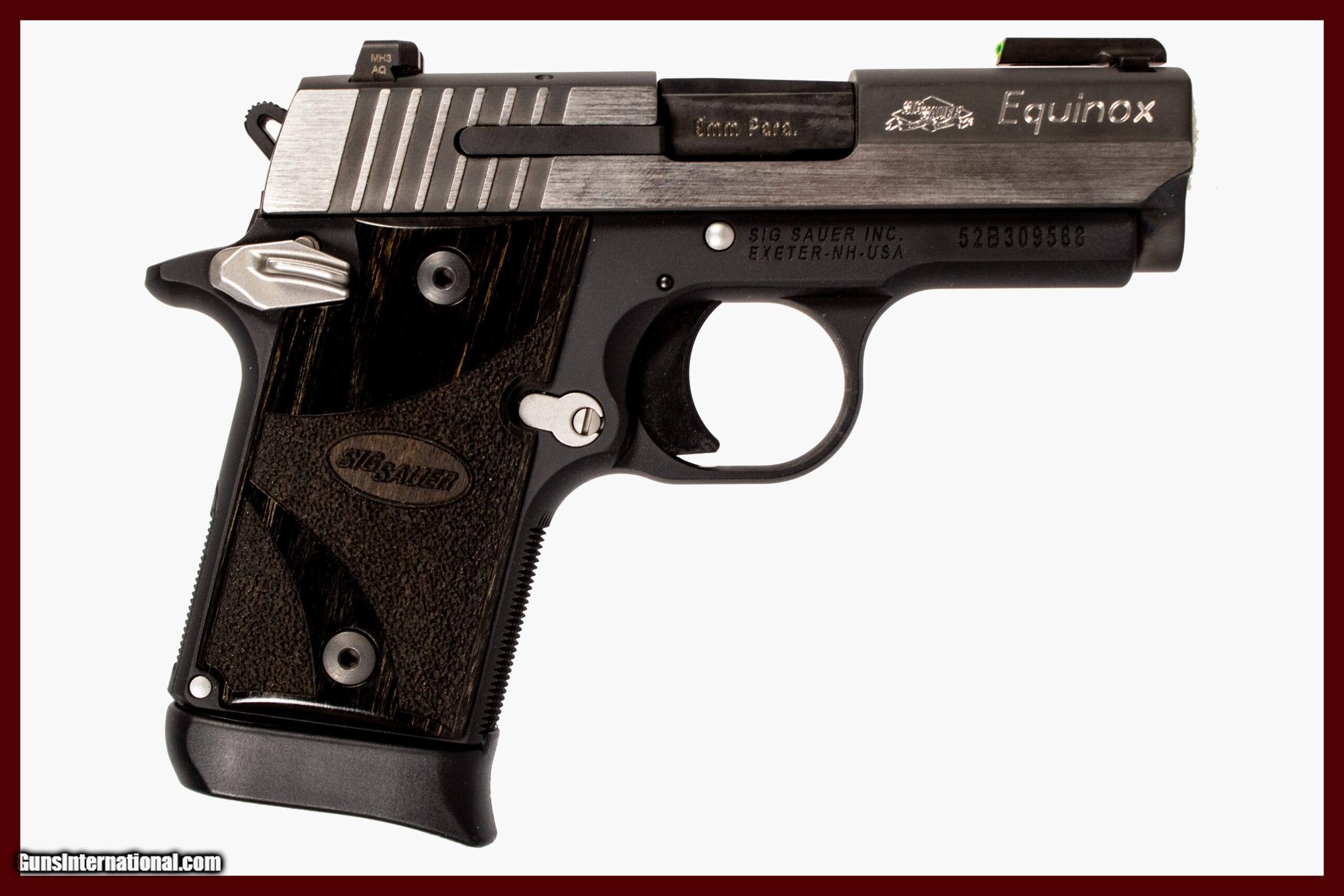 Description: Sig Sauer P938 Equinox chambered for 9mm Luger with three-inch barrel, three-dot tritum sights with some useful life, single action with manual thumb safety, matte steel frame, and serrated slide with stainless walls. Includes case, holster and two magazines. Action appears to be in excellent working order with bright, sharply rifled bore. The NRA grading condition for this USED firearm is Very Good. Dury’s Lifetime Warranty: All firearms purchased from Dury’s Gun Shop, NEW or USED, are covered by a lifetime warranty. We will repair or replace, at our discretion, any firearm purchased from Dury’s Gun Shop, Inc. for as long as it is owned by the purchaser. This warranty is not transferable. WE BUY GUNS! NO COLLECTION TOO BIG OR SMALL FOR OUR GUNS INTERNATIONAL CUSTOMERS ALL OF OUR FIREARMS CAN BE PURCHASED DIRECTLY FROM OUR DURY’S GUNS SITE ! SOLD Manufacturer: Sig Sauer Model: P938 Equinox Caliber Info: 9 mm Barrels: 3inches |