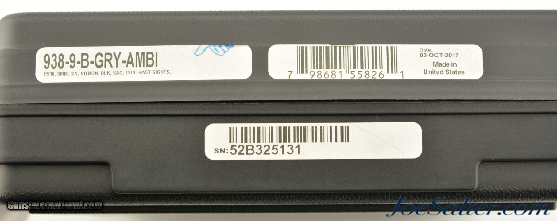 Sig Sauer P938 Pistol 9mm W/3 Mags 7+1 Micro Compact & Extras