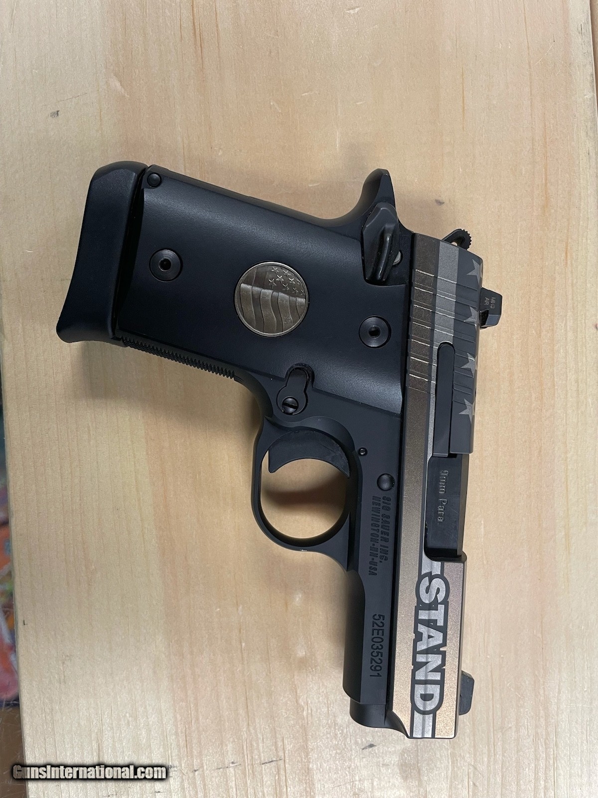Description: Guns Listing ID: 359396 A 1911-inspired 9mm thats easy to conceal and even easier to shoot.? STAND AND SUPPORT: Introducing the special edition P938 STAND. Show your unwavering support for the flag and for Americas National Anthem with this special commemorative edition. With its stars and stripes engraved slide and custom grips with embedded flag medallion, youll proudly share in our support for Americas troops and first responders.? With the P938, SIG SAUER offers the ballistic advantage of the 9mm cartridge in a platform similar in size to the best-selling P238 pistol. A single-action-only trigger, coupled with full-size SIGLITE Night Sights makes the P938 handle like a much larger pistol, yet is still easy to carry concealed. With dimensions just slightly larger than its .380ACP counterpart, the P938 packs seven plus one rounds of 9mm into an all-metal frame and a polished and engraved stainless steel slide. The single-action trigger gives the P938 unmatched accuracy in a pistol its size. Fans of the 1911 will find the thumb safety, magazine release and slide stop lever in familiar places. An ambidextrous safety makes the P938 easy for left- and right-handed shooters. SIG SAUER P938 STAND Black frame ?? Stars, Stripes & the word Stand engraved on Nitron slide ?? SIGLITE night sights ?? Custom black grips with embedded flag medallion ?? Includes (1) 6-round flush mag & (1) 7-round extended mag with finger rest ?? P938 STANDARD FEATURES 1911-inspired micro-compact ?? Single-Action Only (SAO) ?? 7.5-8.5# trigger pull (unless otherwise specified) ?? Anodized aluminum alloy Beavertail frame ?? Front strap checkering ?? Stainless steel slide ?? Rear cocking serrations ?? Combat hammer ?? Carbon steel barrel ?? Ambidextrous thumb safety ?? Includes single-stack steel mag ?? Width: 1.1 ? SOLD Manufacturer: SIG SAUER Model: P938 STAND Caliber Info: 9MM Condition: Used - Non-Certified Barrels: 3 BARREL Finish: CUSTOM |