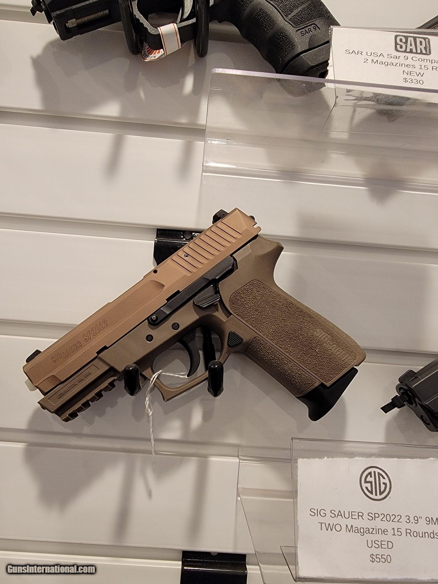 Description: Guns Listing ID: 601522 2 magazine 15rd FDE Manufacturer: SIG SAUER Model: SP2022 Caliber Info: 9MM LUGER (9X19 PARA) Condition: Used - Non-Certified Barrels: 3.9" BARREL Action: DOUBLE ACTION Price: $550.99 Contact Seller |